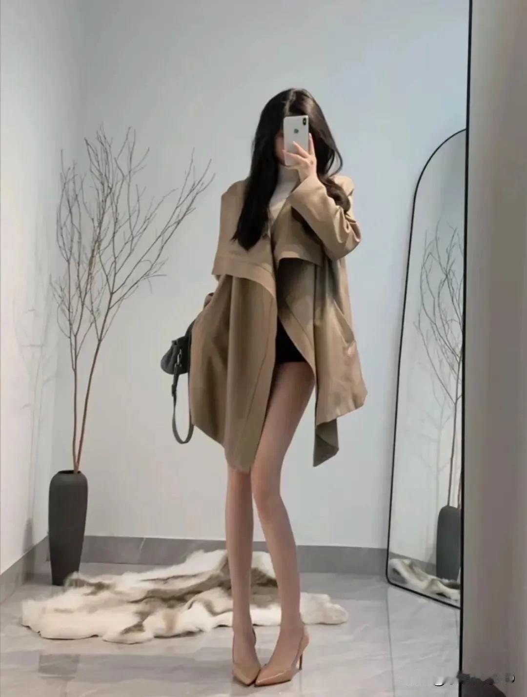 秋冬必备风衣,搭配黑色短裙和高跟鞋,优雅又时尚!