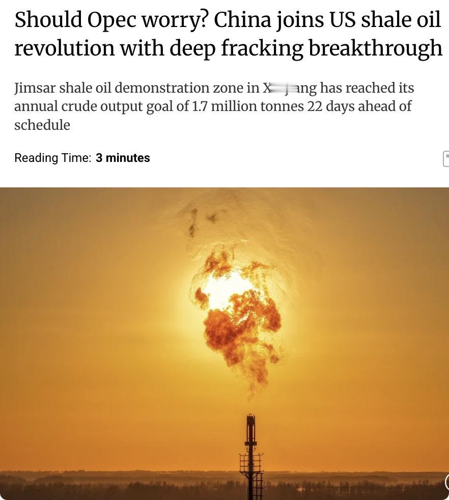 外媒:中国在页岩油开采技术上取得重大突破,新疆吉木萨尔页岩油示范区提前22天完成年产170万吨原油目标。 中国拥有世界最大的可开采页岩气储量和第三大的可开采页岩油储量。此前美国页岩油革命使其成为全球最大原油生产国,削弱了石油输出国组织(OPEC)的市场影响力。 中国页岩油的商业开采可能会对OPEC及其盟友构成威胁,但中国页岩油层埋藏更深,开采难度较大。