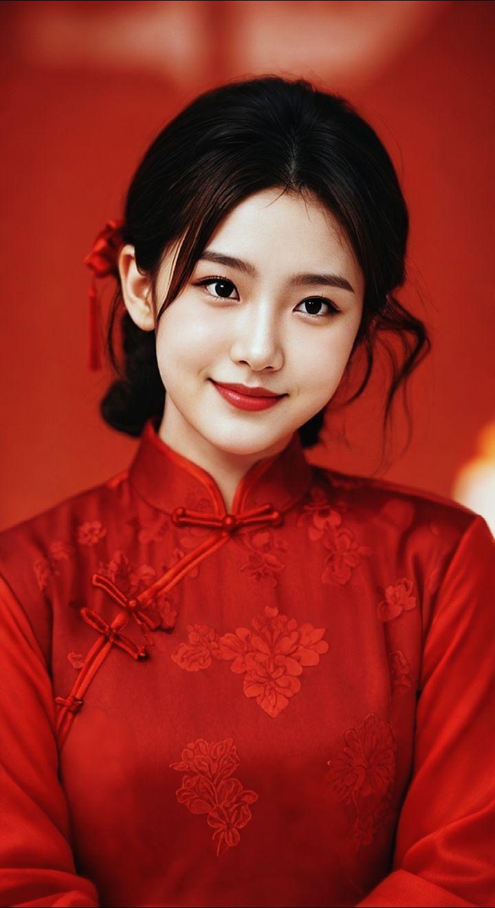 AI扩图AI红裙浅笑
