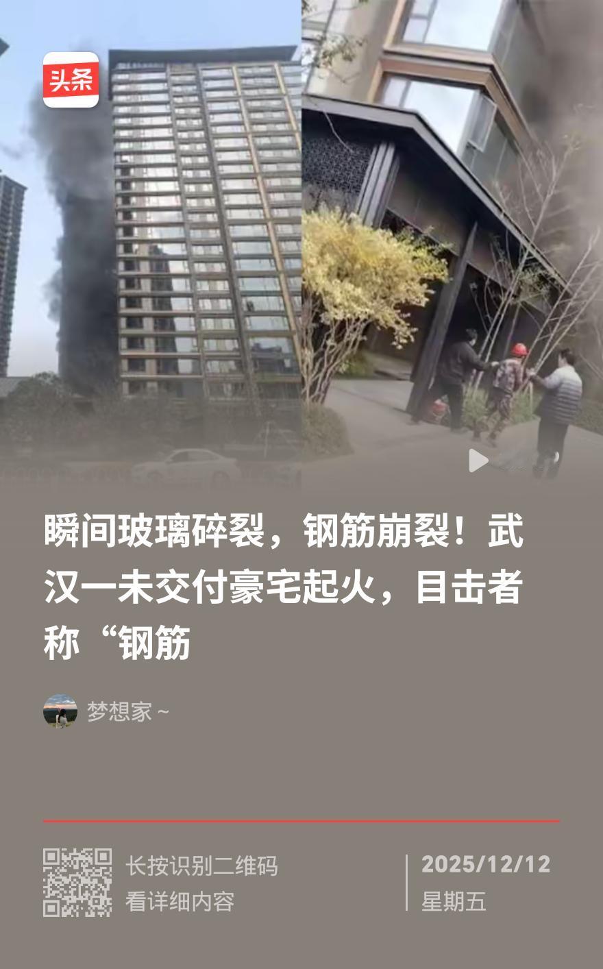 武汉4.1万/平豪宅未交付先起火 业主维权当场撞见太糟心 12月10日下午,武汉武昌区建发朗玥小区突发火情,滚滚浓烟直冲楼顶,隔着屏幕都让人揪心。这可是均价4.1万元/平方米的高端豪宅,主力户型都是183-224平方米的大平层,按合同要到明年3月才交付,如今却先遭了一场大火。 业主胡女士透露,火情下午2点多从3栋负一楼烧起,浓烟很快往上蔓延。业主王先生更郁闷,他和其他邻居本来约好当天下午3点到小区,就交付标准的问题和开发商讨说法,赶到现场时正撞见火情,明火虽基本扑灭,但起火的天井烧得黢黑,惨状触目惊心。 当晚开发商在业主群发通告回应,称是工人装修施工时,负一层天井堆放的物料意外起火,现场人员及时扑救,消防到场前明火已灭,没人员伤亡,连消防水枪都没动用。 让人唏嘘的是,火灾前6天,开发商公众号还高调晒进度,宣称项目主体、外立面都已完工,正做精保洁和景观收尾。12月11日上午,记者多次联系武昌区消防救援大队和开发商,电话均无人接听,建发全国服务热线也仅表示会转达需求,截至发稿无任何回复。 这场大火不仅烧出了未交付楼盘的安全隐患,更让业主对房屋质量忧心忡忡。也给准备买期房的人提了个醒:盯紧楼盘进度的同时,施工安全和物料管理也得多留个心眼。 我可以帮你整理期房购买避坑提示,需要吗?高层住宅楼火灾 家佳源火灾 华房苑商铺火灾