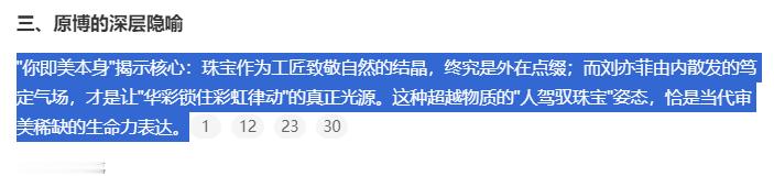 AI的总结好会写啊......珠宝作为工匠致敬自然的结晶,终究是外在点缀。而刘亦菲由内散发的笃定气场,才是让"华彩锁住彩虹律动"的真正光源。这种超越物质的"人驾驭珠宝"姿态,恰是当代审美稀缺的生命力表达。