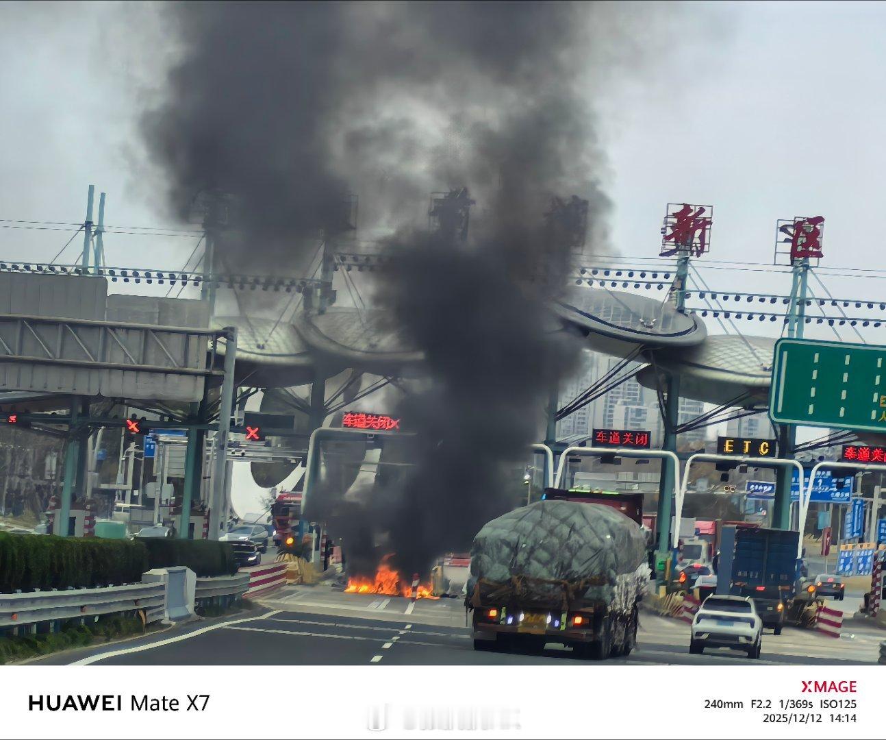 下高速的口,发现一辆冒着黑烟的车,可怕
