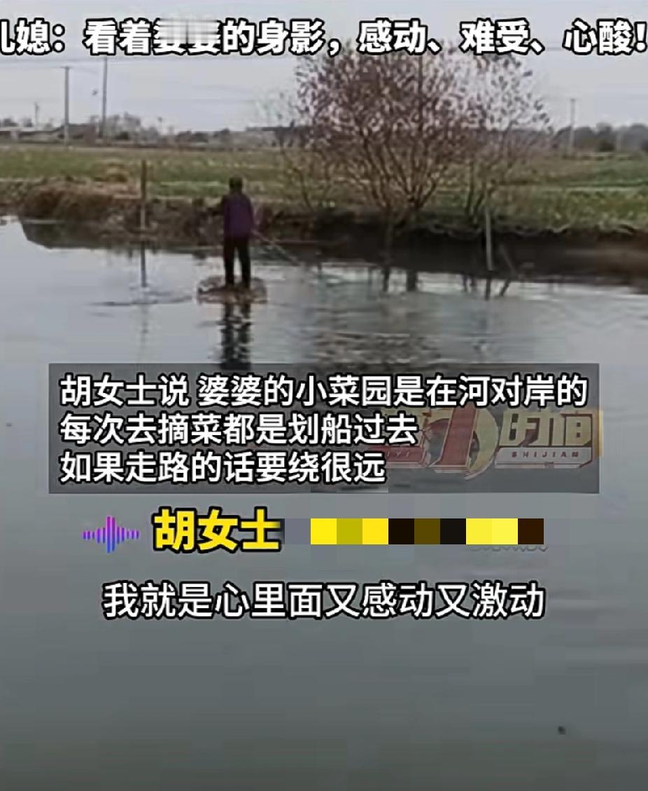 看哭了!愿好婆婆长命百岁!12月11日,安徽宣城的胡女士回老家探望公婆,婆婆划着“泡沫板”去河对岸拔萝卜! 当天,胡女士和老公开车回家,公婆做了丰盛的饭菜,全程嘘寒问暖,十分温馨! 但温馨美好的时光总是短暂的,很快他们就要回家了。临走时,婆婆说:“地里种了些白萝卜,我去拔给你。”婆婆说着便要踏上门前小河边的一块泡沫板! 泡沫板看起来很轻薄,摇摇晃晃十分危险,还没有护栏。吓得胡女士连忙拦住:“不行,妈,太危险了!” “没事,我早就习惯了。”婆婆一边说着,一边踏上了泡沫板。婆婆踏上去的一瞬间,泡沫板沉了一下,胡女士的心也跟着沉了一下。 75岁的婆婆撑起竹竿,站在泡沫板上,慢慢悠悠地滑到了对岸。 胡女士站在岸边,看着婆婆佝偻着的背影,再想想她一生为了儿女,心中充满了感动,又感到无比的心酸! 公公说:“菜地在小河对岸,每次都是划着泡沫板过去,如果绕路的话要绕很远。” 可怜天下父母心!一生为了儿女,他们或许没有真金白银,但他们总是想着把能给的都给一些。希望这样的好婆婆能够身体康健,长命百岁! 好婆婆