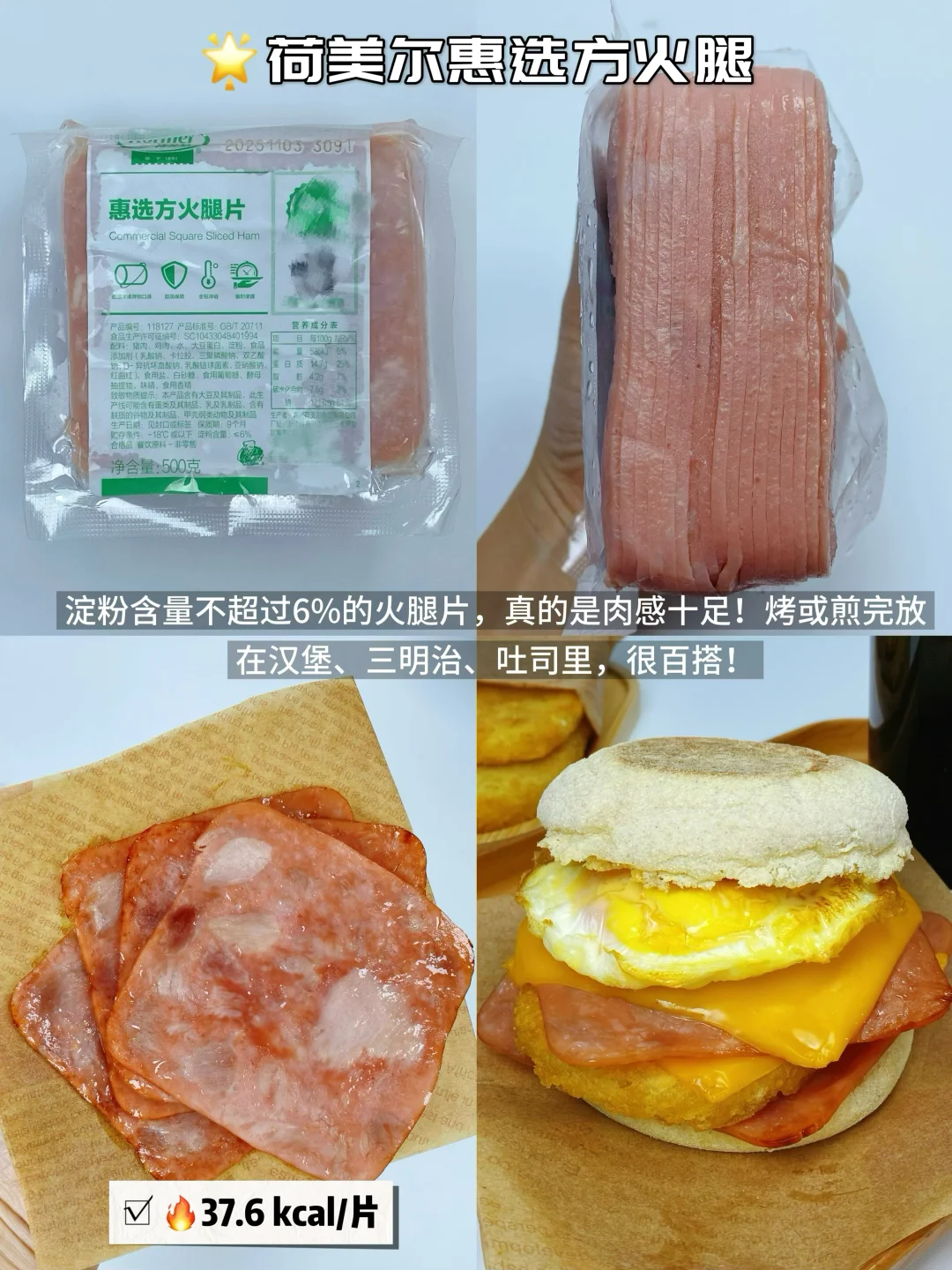 淀粉含量不超过6%的火腿片,真的是肉感十足!烤或煎完放在汉堡、三明治、吐司里,很百搭!