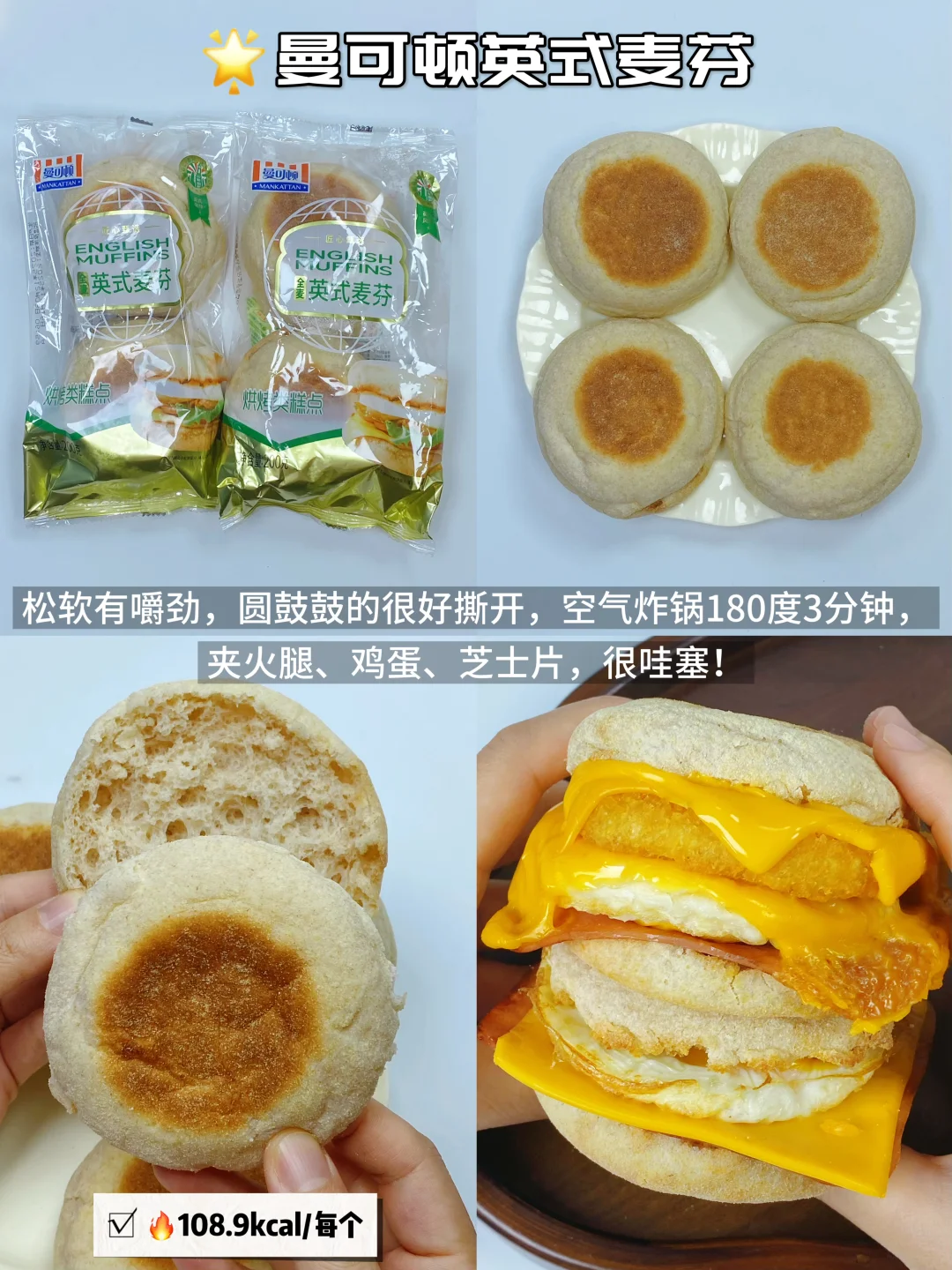 松软有嚼劲,圆鼓鼓的很好撕开,空气炸锅180度3分钟,夹火腿、鸡蛋、芝士片,很哇塞!