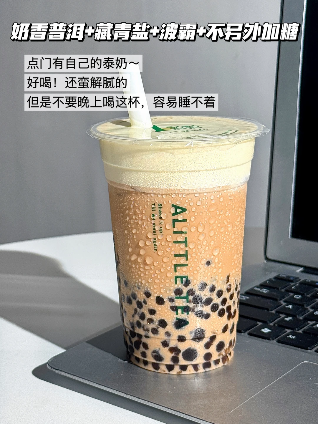 3️⃣奶香普洱+藏青盐+波霸+不另外加糖