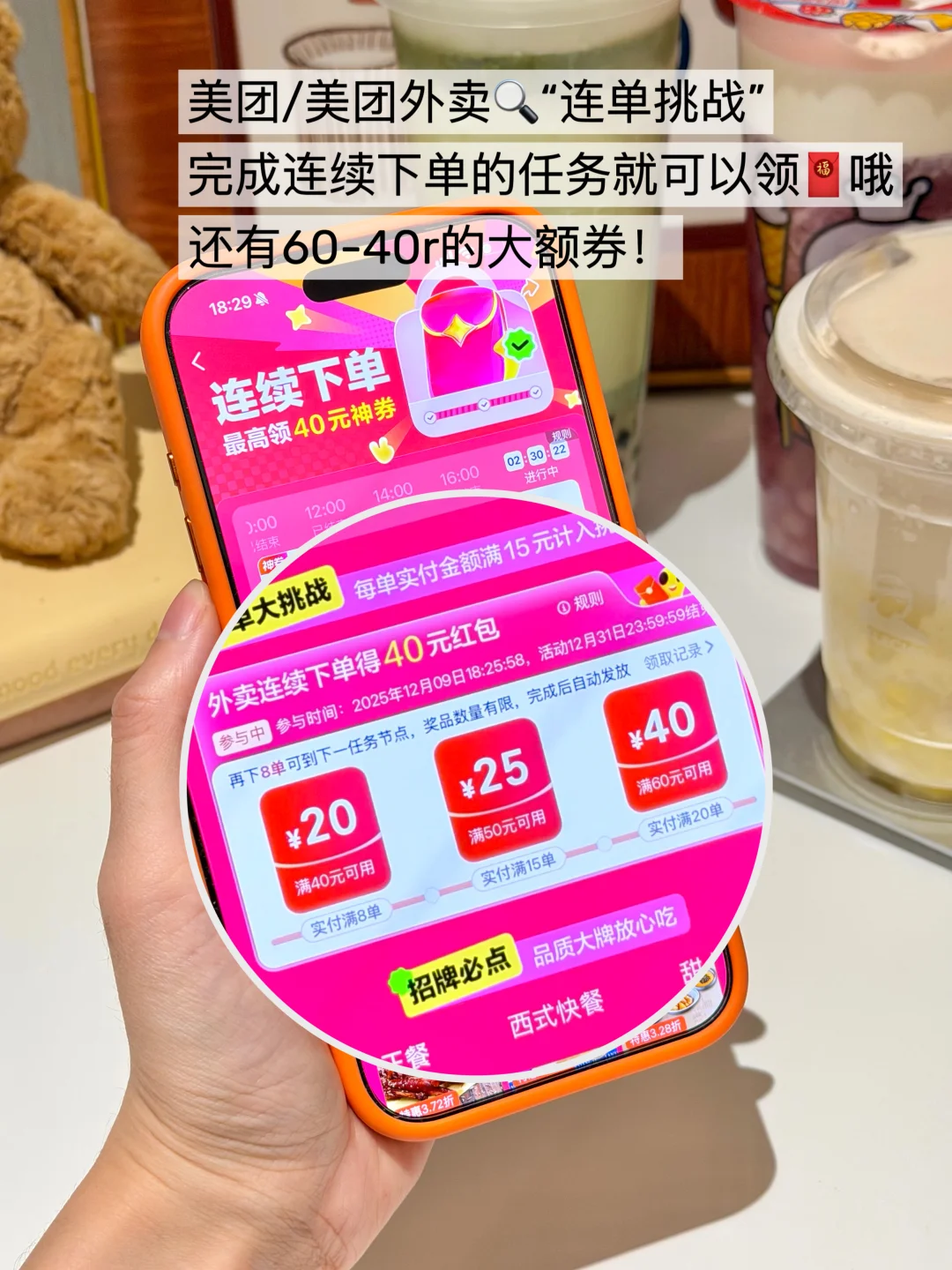 12.1-12.31号,记得美团/美团外卖App🔍“连单挑战”