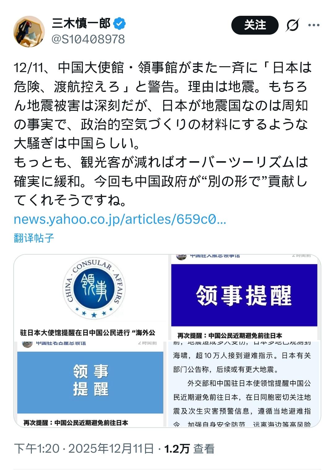 驻日·大使馆提醒在日中国公民进行“海外公民登记” 说是地质原因。确实如此! 但,不管是出于什么原因,天灾也好,有祸也罢。危邦不入,乱邦不居——这是中华民族传承千年的处世智慧。 有人帮海外公民未雨绸缪,这总是对的! Source: X