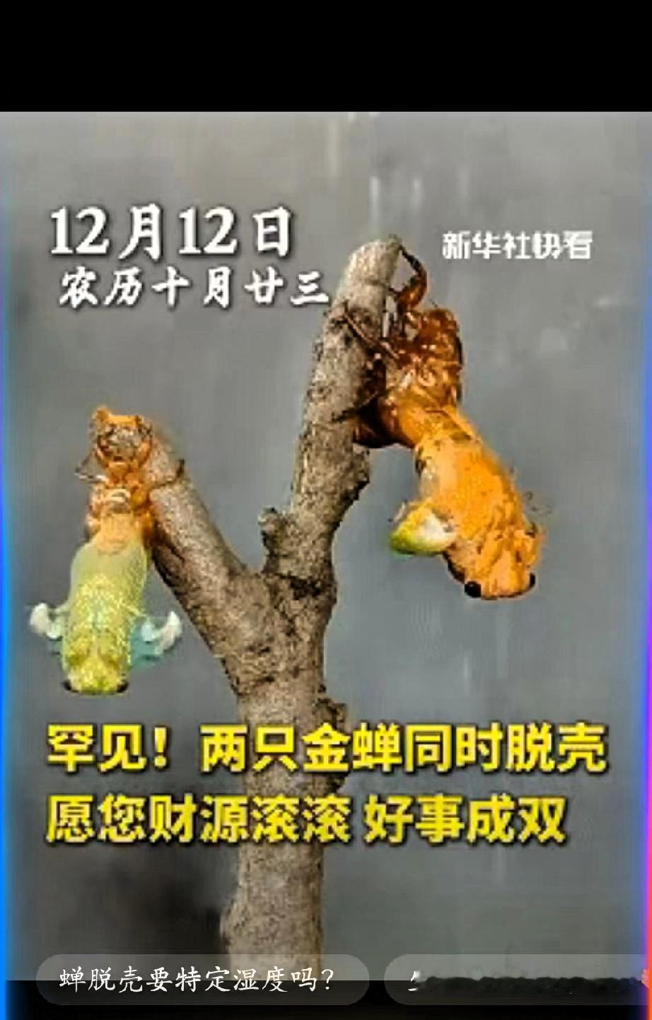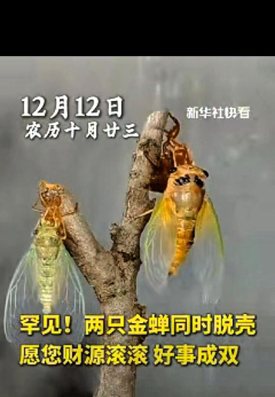 “太罕见了!”深夜,男子去院子里找东西,无意中发现树干上有动静,凑近一看,竟然是两只金蝉正在同时脱壳 平时能看到一只蝉脱壳就挺难得的,两只凑在一块儿同时蜕变,确实不多见。大哥怕惊扰到它们,轻轻拿出手机记录, 月光下能清楚看到,两只金蝉的背壳先是慢慢裂开一道缝,然后嫩绿色的头部一点点探出来,接着是前胸和翅膀。 每往外挪一下,它们的身子都会微微抖一下,看得出来在使劲儿,不是轻松的事儿。刚脱出来的时候,翅膀还是皱巴巴的软膜,过了一会儿才慢慢舒展开,在月光下透着点淡淡的光泽。 看着它们一点点从硬壳里出来,觉得特别触动。咱们都知道,蝉在土里要待好几年,就靠吸树根的汁液慢慢长大,不见天日的日子里,它就默默等着,等时机到了,才爬出来蜕掉旧壳,长出翅膀才能飞。 这两只金蝉一起脱壳,其实也像在告诉咱们:不管是动物还是人,成长都不是一下子的事儿。 都得像蝉那样,沉下心来积累,到了该蜕变的时候,再难也得咬着牙往前,才能变成更好的样子。老辈人常说,看到金蝉脱壳是好兆头,能撞见两只一起蜕,也算是份小幸运。