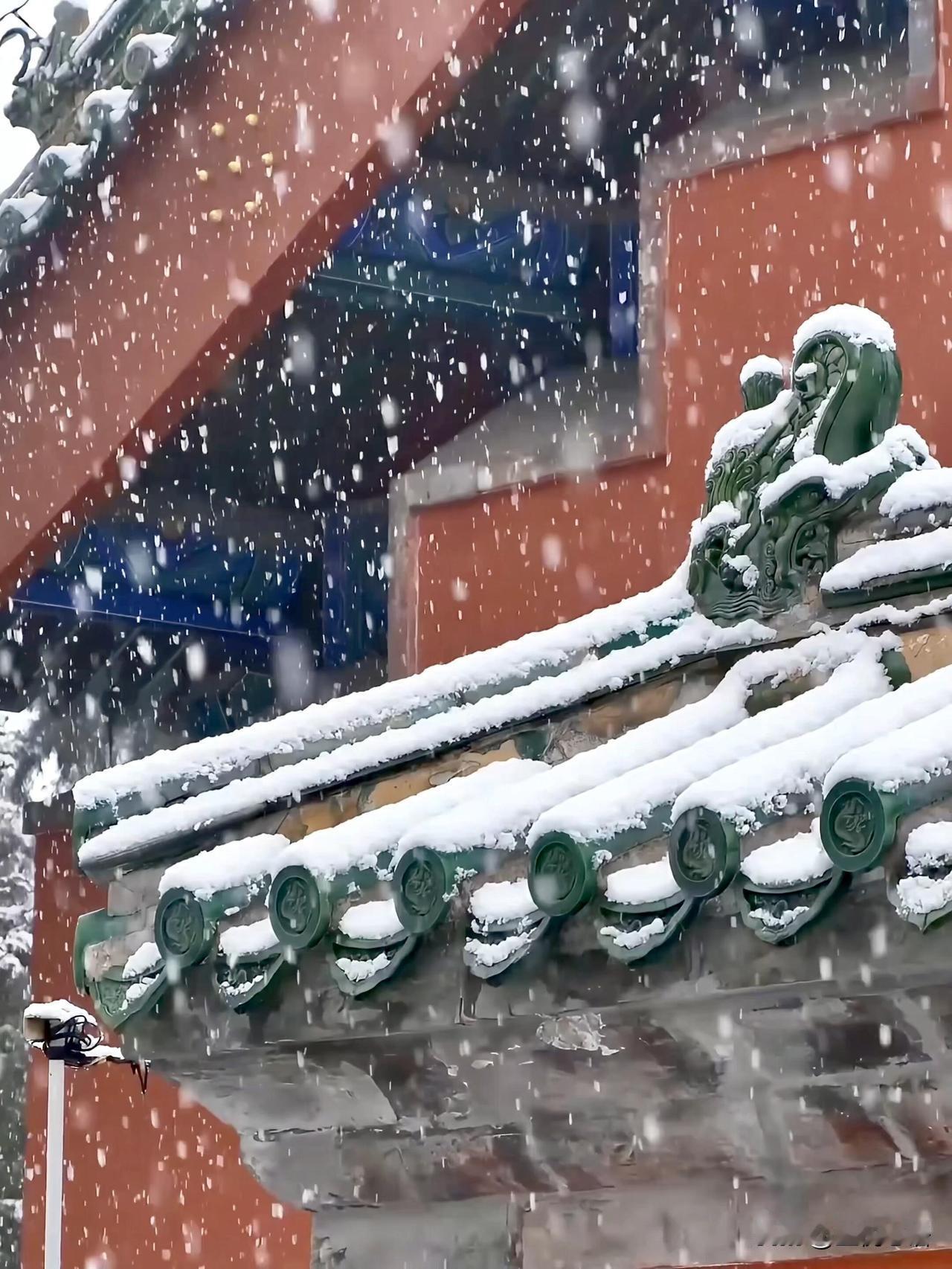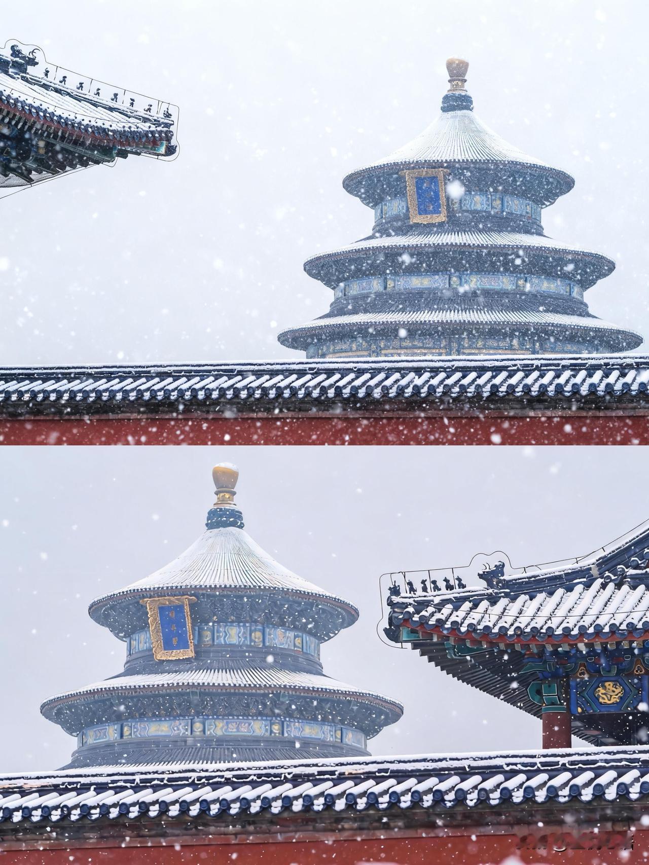 雪落天坛!这美到窒息的中式浪漫 这一刻下雪的天坛,美哭了 白雪压着祈年殿的飞檐, 红墙映雪,仙气拉满。 寒风再冷也值了, 每一张都是自带滤镜的大片, 这哪是雪景啊, 是刻在骨子里的中式浪漫。 第一次见雪裹天坛的模样, 震撼到说不出话。 原来冬天的天坛, 才藏着最绝的惊艳! 谁不想亲自去赴这场雪后之约~