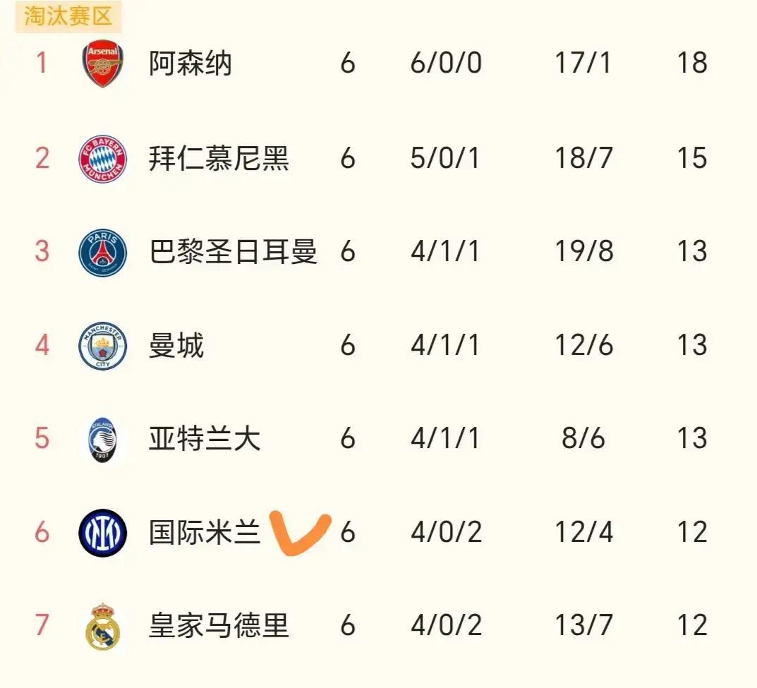欧冠前八,国米可能最容易掉附加赛。 最后两场要踢阿森纳和多特,这俩是前八里最难啃的对手。 下轮对阿森纳的比赛是关键。 阿森纳16个净胜球早锁定出线,但不会放水。 他们想冲利物浦改制后的小组赛最佳战绩,肯定得争胜,最多轮换几个人。 国米赢不了的话,末轮碰多特更麻烦。 多特现在只落后一分,肯定跟你死磕。 亚特兰大那边直通形势稳,国米这处境确实悬。