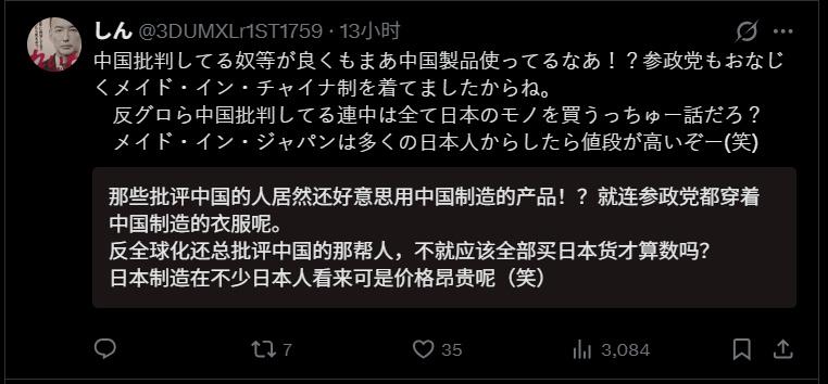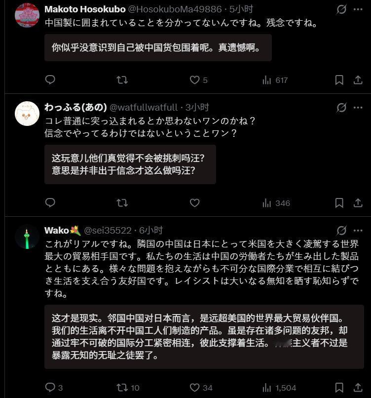🔻网友分享:日本网民嘲笑和指责那些号称“抵制中国制造”、自己却大用特用中国制造的日本反华政客。 🔻有日本网民认为“新世纪的厨房辩论”,西方和日本已经输了。 🔻攻守易势了,家人们。海外条友说 海外网评 海外新鲜事 一个人最大的无知是什么?