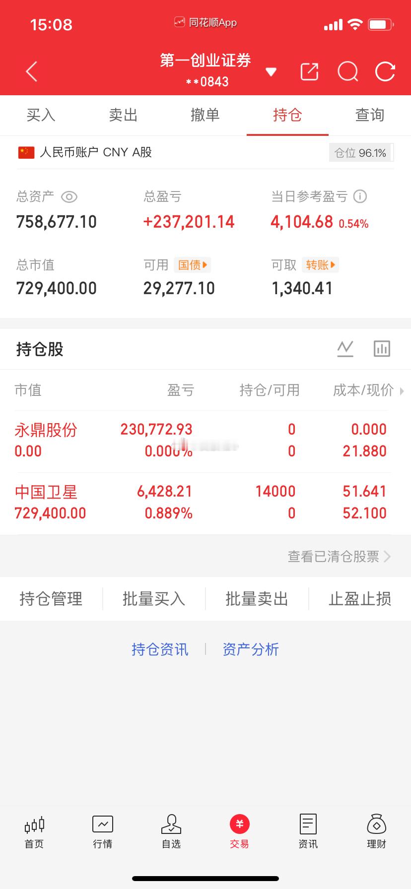 爱股程全职炒股日记40w本金挑战一年翻5倍,第( 72 )天!总资产:75w当日参考盈亏:+4104目前持有:中国卫*今日动向:早盘卖出永鼎股*新进中国卫*特别声明:本文仅是个人观点及操作不构成投资建议,仅供参考!