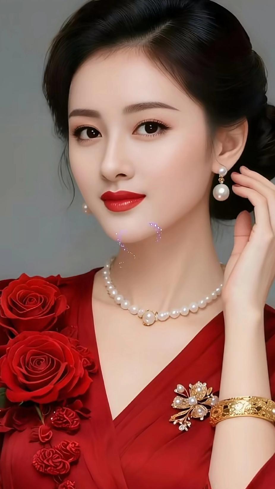 温柔微笑,珍珠项链,优雅气质,甜美动人