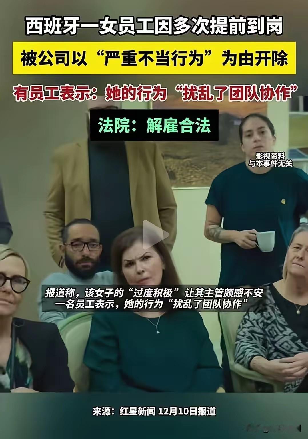近日,西班牙发生了一起荒诞至极的职场事件。一名女员工因多次提前到岗,被公司以“严重不当行为”解雇,此判决引发了广泛关注与热议。 事情的起因是,这位女员工为提前完成工作任务,常于正常上班时间前抵达公司。然而,主管却认为她提前到岗“扰乱了团队协作”,给自己造成了“巨大压力”,故而决定将她解雇。女员工不服,起诉公司,可法院最终判定公司解雇行为合法。 这起事件的关键在于,“提前到岗”竟成了解雇理由。在多数人印象里,迟到被开除屡见不鲜,但“早到”被解雇却极为少见,堪称“奇葩”。网友纷纷调侃:“见过迟到被开除的,没见过早到被开除的!”这句话道出了公众的惊讶与不解。实际上,这反映出职场文化对“时间管理”的严苛要求,以及对员工自主行为的限制。 从法律层面看,法院判决公司解雇合法,意味着公司有合理理由认定员工提前到岗影响了团队正常运作。或许,管理层担忧员工早到会带来不必要的干扰,又或许觉得员工的行为未获公司明确规章制度认可。然而,这也引发了关于工作场所“自由度”与“合理性”的探讨。合理的工作安排应尊重员工的合理需求与自主性,而非一味追求“统一时间”。 这起事件也暴露出一些职场管理的盲区。在追求效率时,若忽视员工的积极性与自主性,反倒可能产生负面效应。合理的制度应鼓励员工积极表现,而非用严格规章约束他们的合理行为。 总体而言,这起“提前到岗被解雇”的事件提醒我们,职场管理需更具人性化。尊重员工的合理行为,建立公平合理的规章制度,方能实现企业与员工的共同发展。公众也应反思:在追求效率的同时,是否也应顾及人性的温度?让我们期待一个更理性、包容的职场环境出现。