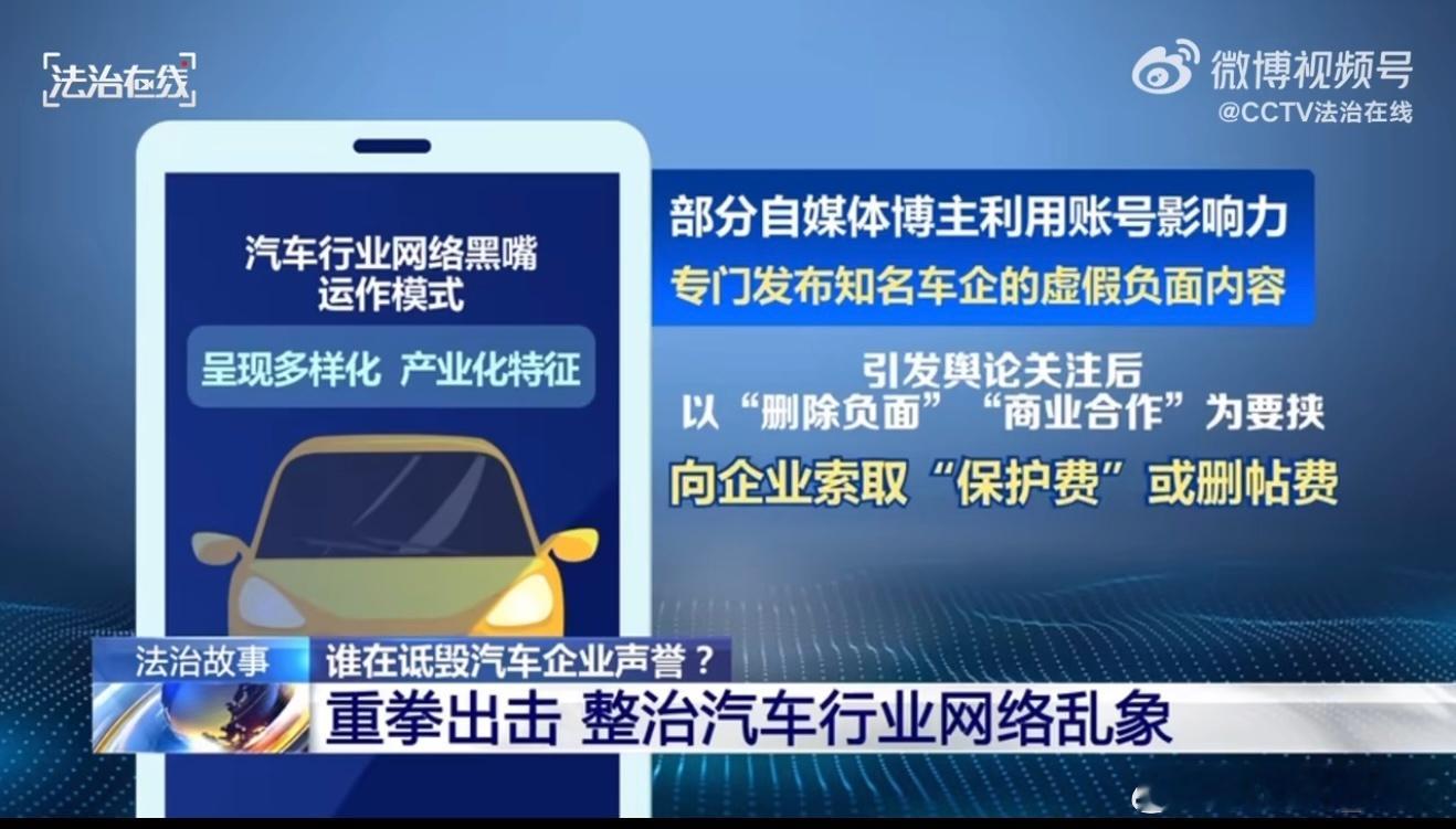 警惕汽车行业饭圈化毒流量央视起底汽车行业网络乱象 龙猪上法治在线了……这一波正在大力整治,汽车行业网络乱象正在污染网络生态。