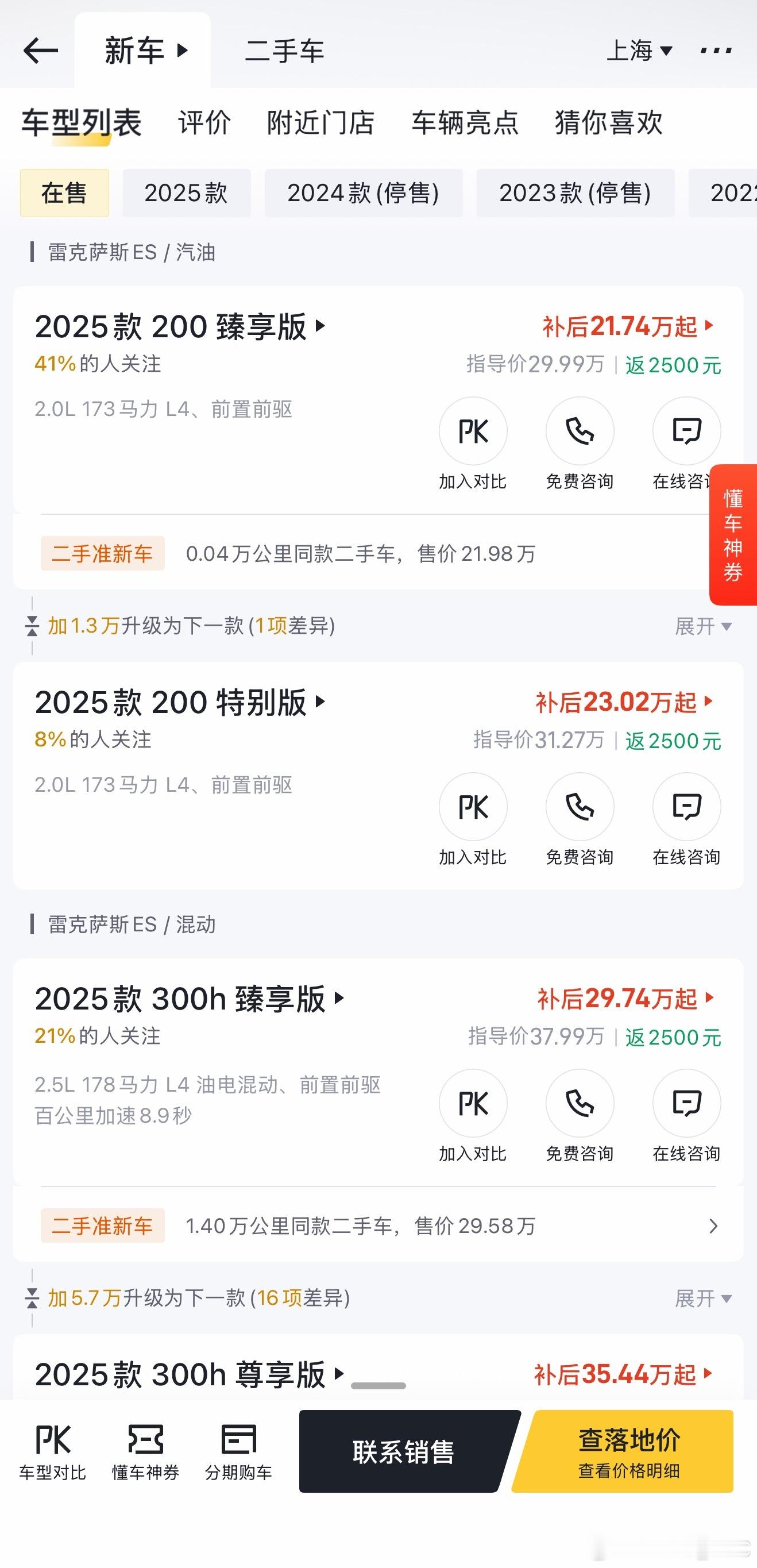 去车管所看到两台雷克萨斯ES200来上牌,好奇去搜了一下价格……现在已经21万多了?当时我朋友可是花了30多万买的……