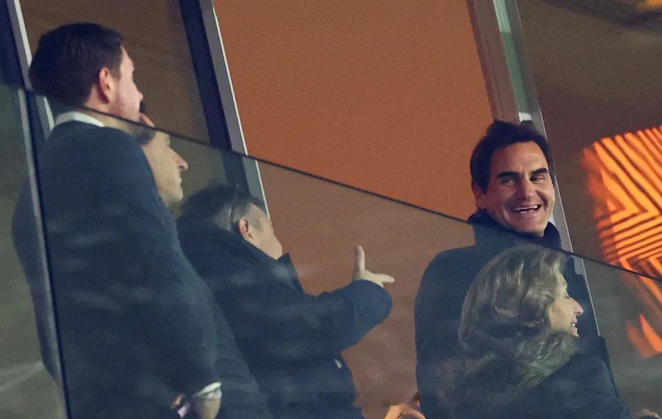 【天王驾到】欧联杯,巴塞尔1比2阿斯顿维拉,在球场看台上面,出现了一位神秘大佬,已经退役的网坛天王费德勒。44岁的费天王,就出生在巴塞尔这座城市,自小就是这支球队的球迷。