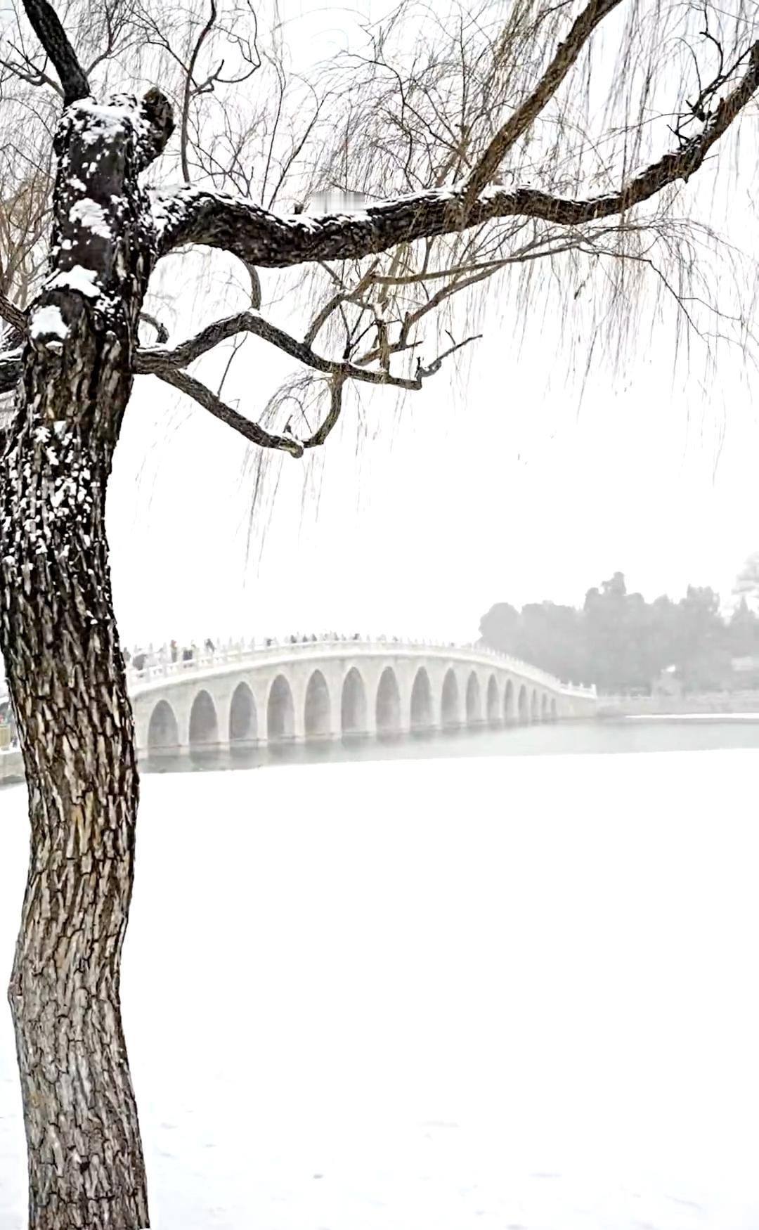 北京下雪!!12.12此刻颐和园实况! 终于等到北京初雪,直冲颐和园~一进新建宫门,看到十七孔桥,所有人无不为雪中的中式美学惊呼赞叹,真的如同仙境一般!太美了!!