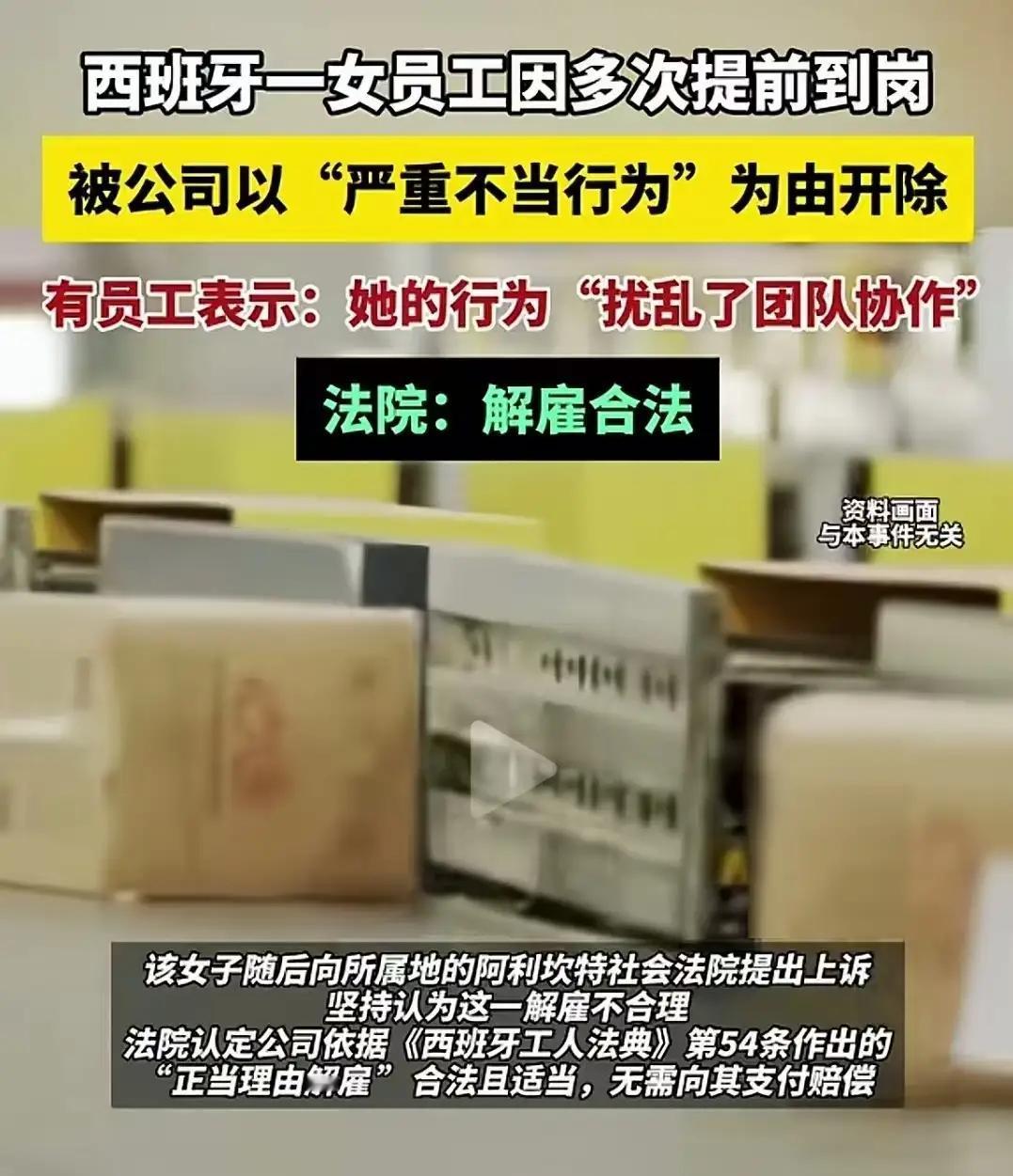 国外更奇葩!西班牙一女员工因为多次“提前到岗”被公司以“严重不当行为”为由开除!主管:“她的行为扰乱了团队协作,让我压力很大……”女员工不服,起诉公司。但万万没想到,法院判决解雇合法!网友:见过迟到被开除的,没见过早到被开除的! 这事一出,瞬间点燃了无数人的热议。我们习惯了迟到被批评、甚至被罚款,甚至被开除,但“提前到岗”竟然也能成为解雇理由?这背后到底隐藏着怎样的职场潜规则?难道提前到岗真的会扰乱团队的正常运转?还是说,这只是个“借口”,用来掩盖更深层次的职场焦虑和管理困境? 其实,细细想来,这个事件折射出的是现代职场中“过度管理”与“员工自主性”的激烈碰撞。公司以“严重不当行为”开除一名提前到岗的员工,听起来荒谬,却也反映出一些企业对于“纪律”的极端追求。难道只要你比规定时间早到,就会被视作“扰乱秩序”?还是说,这个公司其实更担心“被超越”的心理在管理层中滋生?员工的主动性和责任感,反而成为被惩罚的理由。 更令人深思的是,女员工不服诉诸法律,法院的判决竟然站在了“公司解雇合法”的一边。这背后,是否也意味着在某些企业文化里,员工的“自主”已被严格限制?在这样的环境中,员工的每一个“小动作”都可能被放大成“破坏纪律”的罪名,最终陷入“被动”的困境。 网友们的评论也格外犀利:“见过迟到被开除的,没见过早到被开除的!”这句话犹如一面镜子,映照出我们对“合理”和“不合理”的认知偏差。迟到被惩罚,似乎合理;但提前到岗,却成了“扰乱秩序”的罪名,这是不是说明我们对“时间”的定义,已经变得扭曲了?难道,我们的职场规则,已经变成了一场“时间的游戏”,而非真正的工作考核? 这件事情的背后,隐藏着一个深刻的现实:在某些企业里,管理者更关心“控制”而非“激励”。他们害怕员工的主动性,害怕员工超越“规定的界限”,因为那代表着一种不受控的可能。而员工们也在迷茫中挣扎:我努力工作,提前到岗,是为了更好地完成任务,还是被视为“威胁”? 这不仅仅是一起职场事件,更像是一面镜子,折射出我们每个人在现代职场中的困惑与挣扎。我们渴望被认可,渴望有自主权,却在制度的铁笼中不断迷失。或许,这个事件提醒我们:真正的职场“规则”不应是束缚,而应是激发员工潜能的土壤。我们期待一个更懂得尊重个体、理解责任与自由平衡的未来。 你怎么看?这样的“奇葩”事件,是职场的孤例,还是普遍现象?留言告诉我,让我们一起讨论这个令人深思的职场迷局!单方面辞退员工 西班牙劳动法
