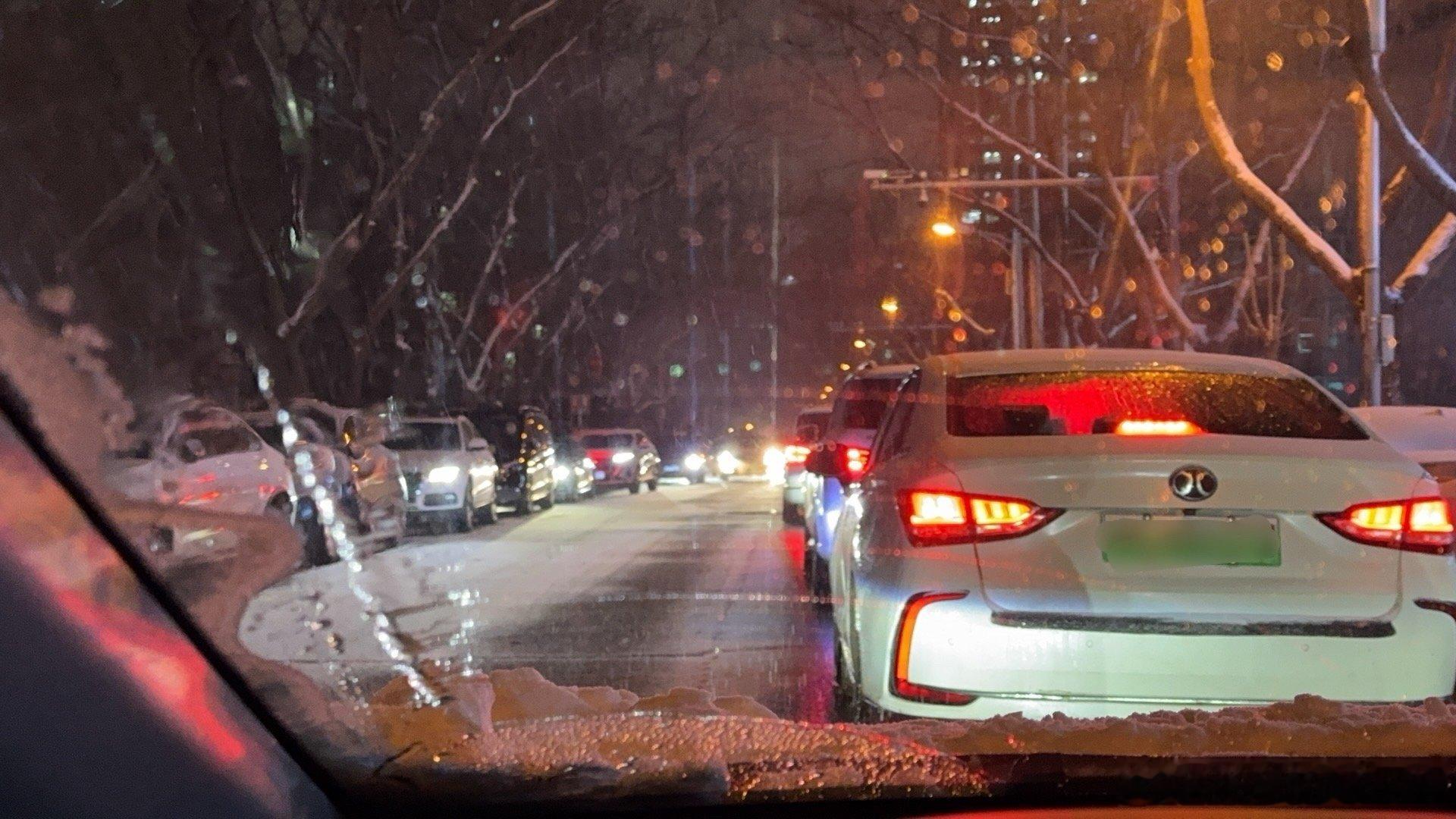 北京今天这路面太滑了!!!各位一定注意安全!⚠️北京马路结冰了‼️晚上去接老妈,2公里多的路,我开了40分钟,遇到6起事故,追尾、撞马路牙子、好多电动车摔倒转圈,还有个大姐摔完,人从对向车道滑过来靠在我车上。。。目前路面已经结冰‼️北京99%的人没有换冬季轮胎的习惯,低温➕雪➕冰,你四驱也站不住‼️⚠️【今晚马路上开车一定留够2个以上车距!】打滑时绝对不要大幅度乱打方向!如果遇到事故,拍照取证后尽量快速协商处理解决挪车,因为一定会有人看不到刹不住!‼️唉,还有,马路上电动自行车这天气根本不减速、依旧闯红灯钻缝逆行,这个作为汽车驾驶员我只能祝各位好运,这个真没办法。‼️另外,明天周末,路上按这个状况看一定结冰,特别是一些小路必结冰❗️❗️对自己轮胎没了解的、技术一般没有丰富冬季驾驶经验的,我建议在家娱乐,出门尽量别开车了。凯文聊车北京下雪北京大雪
