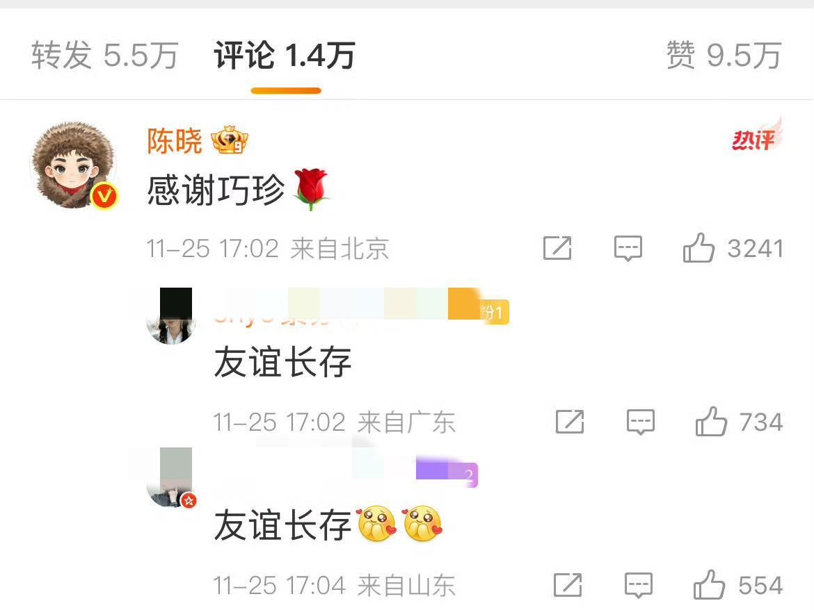 有网友发现最近陈晓和陈妍希各自的新剧开播后,李沁直接化身端水大师,给陈晓和陈妍希都做了剧宣,宣传话术也都一样,没什么太大的区别。 李沁的粉丝也非常机智,霸榜热评,让大家点开后只能看到“友谊长存”这个词,一片祥和。 不少网友觉得李沁是个妙人,陈晓和陈妍希离婚时,闹得那么不体面,李沁作为俩人的共同好友,居然没有战队,而是中立态度,和双方都保持友好往来,这为人处世之道算是被她玩明白了。 不过小编觉得,李沁和陈晓陈妍希都只是非常普通的朋友,也就是以前合作过,算前同事了,都不是很深入了朋友,剧宣也只是因为之前她的新剧播出时,陈晓和陈妍希帮她做了剧宣,她出来还礼罢了。 要知道娱乐圈的剧宣可不简单,看似是关系好的明星之间随手一发,但实际上这里面藏着行业里的人情世故,收了别人的礼,是一定要还的。