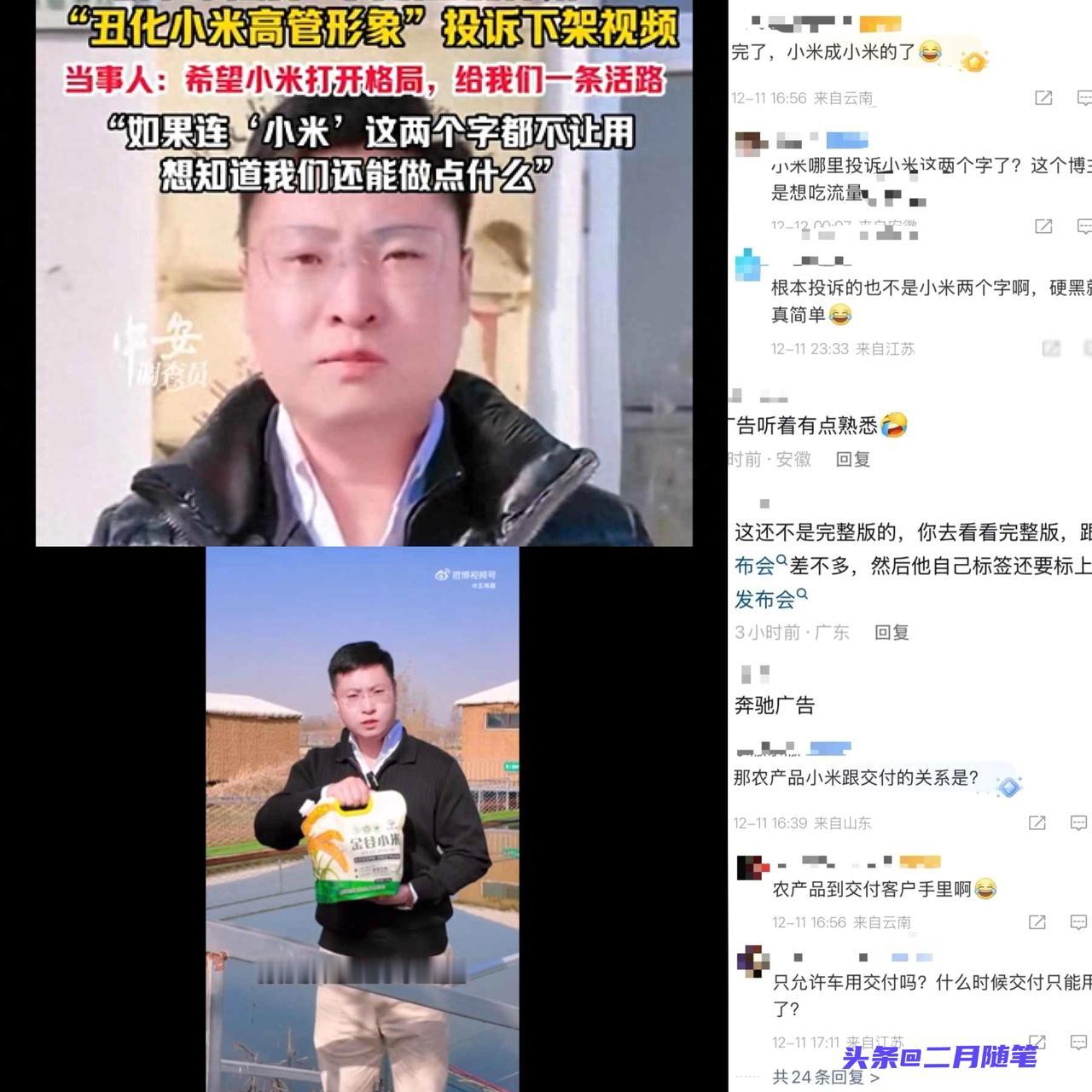小米回应“村支书卖小米被投诉下架视频”: 没那么大权力;涉事村支书账号客服曾回复称... 这事看得人心里堵得慌! 山东一个村支书卖自家种的粮食小米, 账号却被投诉下架了, 连商品橱窗都没了, 老百姓想踏实赚点钱咋就这么难。 这事表面看是名字惹的祸, 背后其实藏着太多农民做电商的不容易。 山东威海的村支书冯玉宽, 平时就穿着沾满泥巴的农服,用老家方言拍田里收谷子的日常, 靠卖自家的小米过日子。 可十二月初, 他的账号突然就被下架, 橱窗也给关了, 辛苦做起来的电商一下子全停了。 他觉得很委屈, 又没办法, 直说自己卖的是种了一辈子的粮食小米, 不是手机品牌, 别挡着老百姓的活路。 小米公司那边回应说不是他们直接操作的, 是法务或者代理公司干的, 投诉理由还说什么关联营销、丑化高管这些, 可冯玉宽的视频里全是真实的农活场面, 根本没有什么恶意内容。 最后冯玉宽只能公开道歉, 账号里的东西也全都清空了。 农民搞不懂那些复杂的商标规则, 就只想靠双手挣点辛苦钱。 真没想到, 一个用了几千年的粮食名字,现在竟然成了农民直播卖货的拦路虎, 这也太让人心酸了! 村支书卖小米账号被下架争议 农民电商维权难 商标通用名使用边界 社会热点观察小米争议