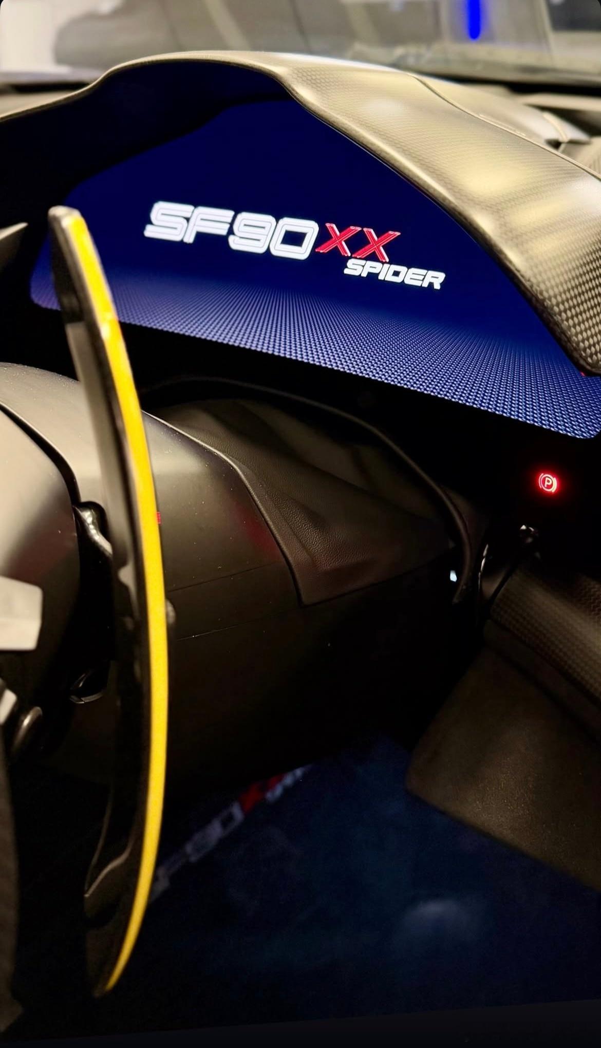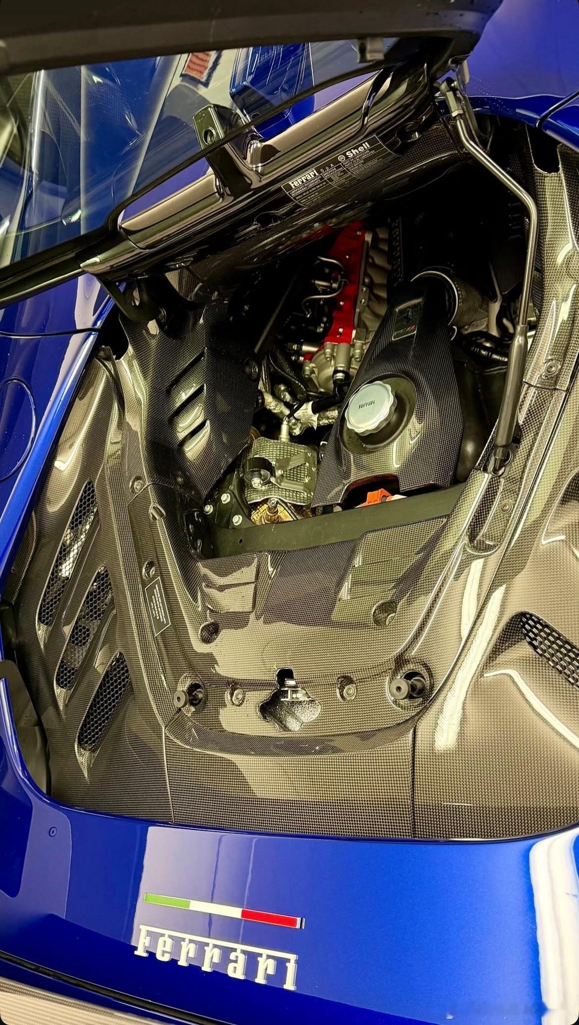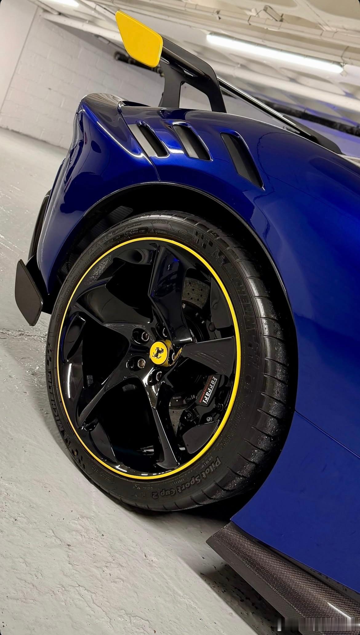 外观配色为Blu Vietri,一款非常罕见的One-off配色,呈现出很深邃的宝石蓝效果。前杠上侧使用了Giallo Triplo Strato进行点缀,同样的颜色还出现在反光镜的中线上,尾翼的两侧以及边长上,此外两侧车门下方还选择了镂空的55号赛车编号。内饰方面,Daytona复古赛车座椅以Nero Alcantara为主,座椅中线为Giallo Leather,黄色的点缀还出现在换挡拨片上。交付于位于英国伦敦的HR Owen Ferrari,如今大部分稀奇的颜色都可以通过Atelier来达到。图片来自