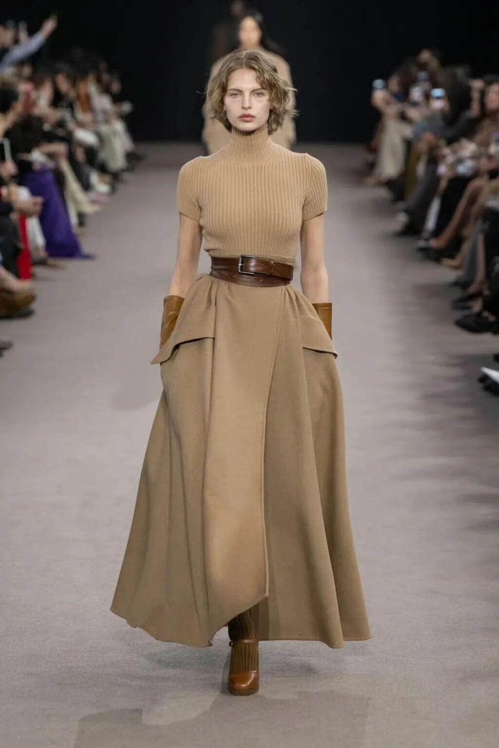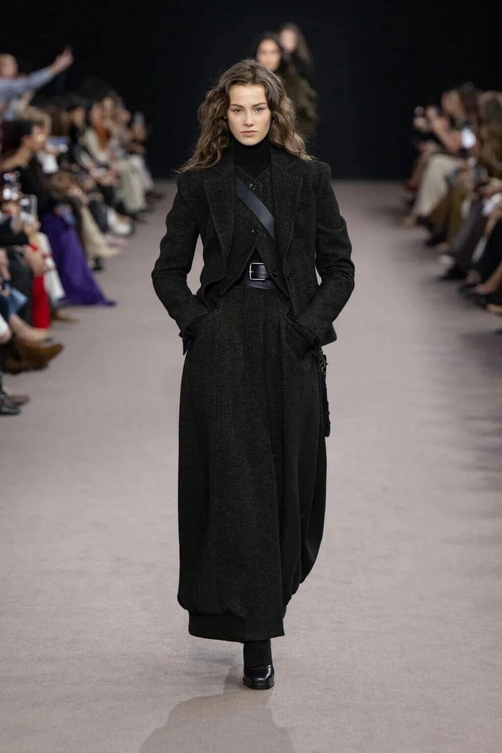 审美提升|Max Mara2025秋冬秀场 这是气场全开的一期,以勃朗特文学为魂,诠释新哥特式女性力量。 她是桀骜的女主角,坚韧又不失优雅,交融着理性与从容,内心深处从未放弃对荒野浪漫与炽热情感的渴望。 秋冬穿腻了黑与白,不妨试试卡夏色,在浅灰到深岩色的渐变里,感受约克郡岩石与天空的晨昏交替。