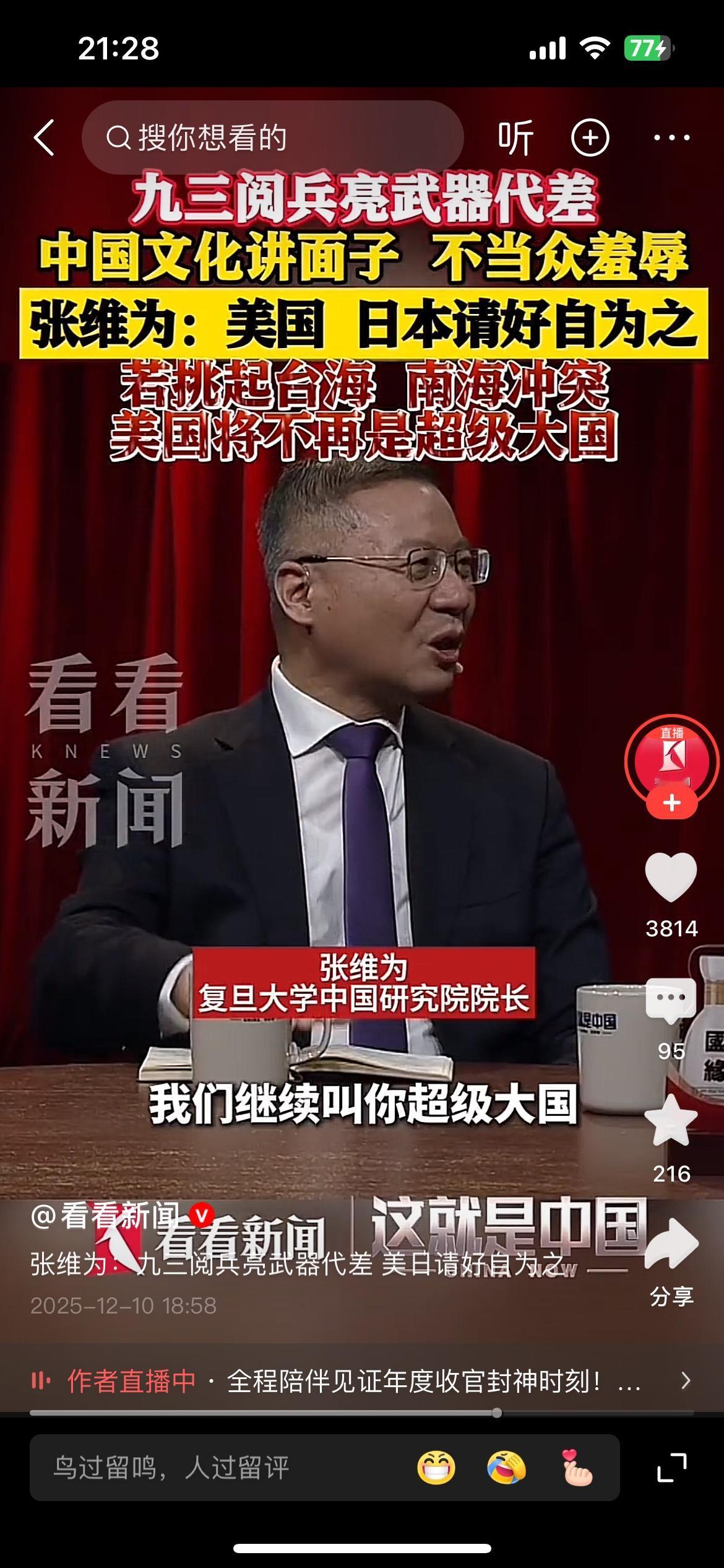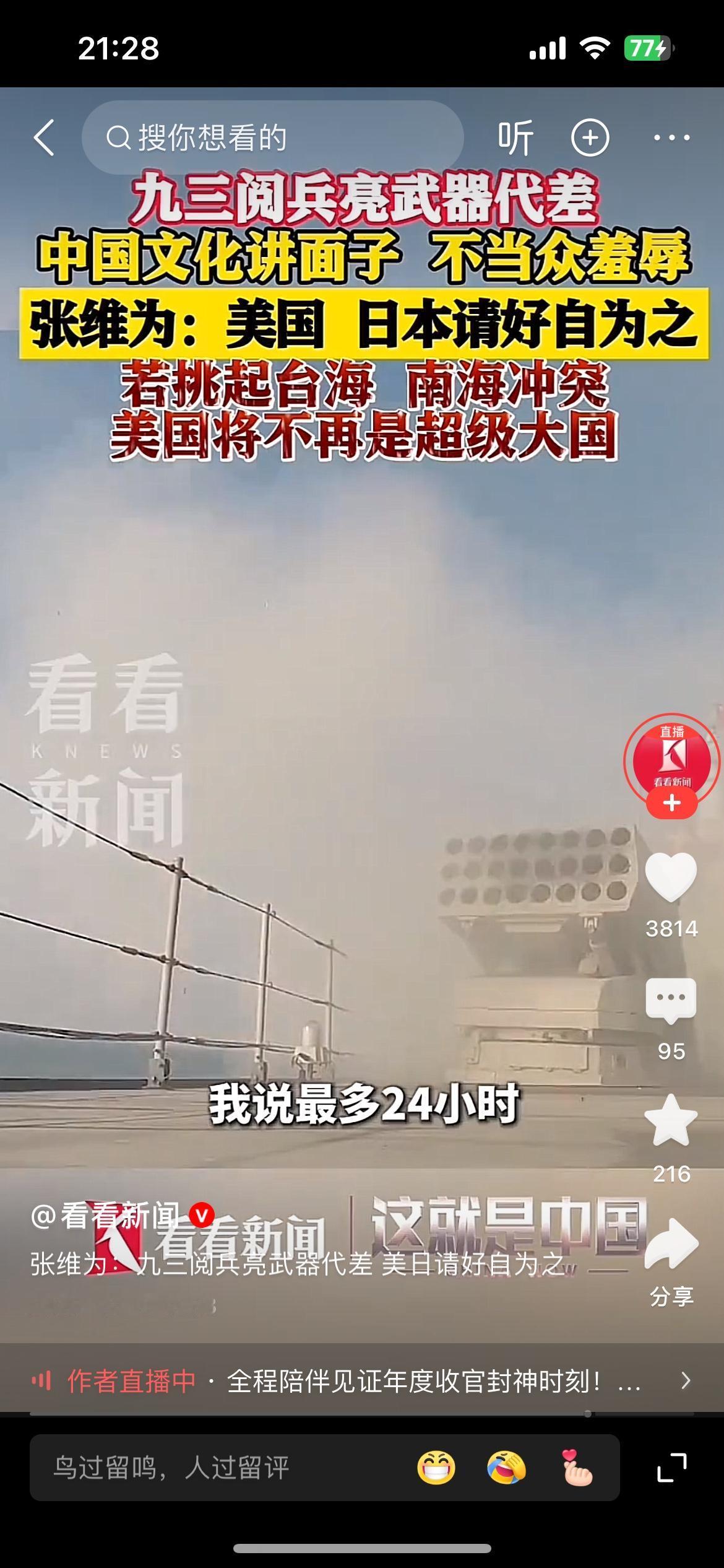 这话有点硬啊,估计美国一耳朵听不下。“最多24个小时,可以让全世界知道,美国将不再是超级大国”。 够不够硬?24小时,天翻地覆慨而慷,超级大国的位子丢了,现在之所以还被喊着超级大国,是因为咱爱面子,给你留着呢。
