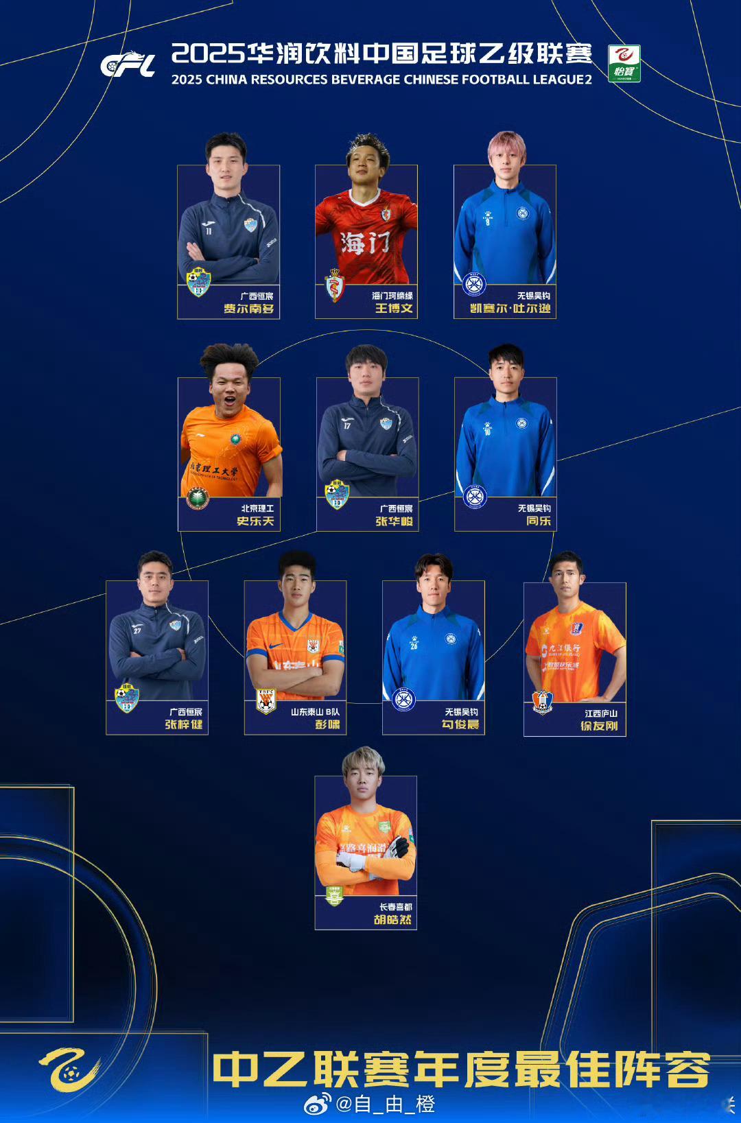 彭啸入选中乙联赛最佳阵容。中足联颁奖典礼自由橙山东泰山
