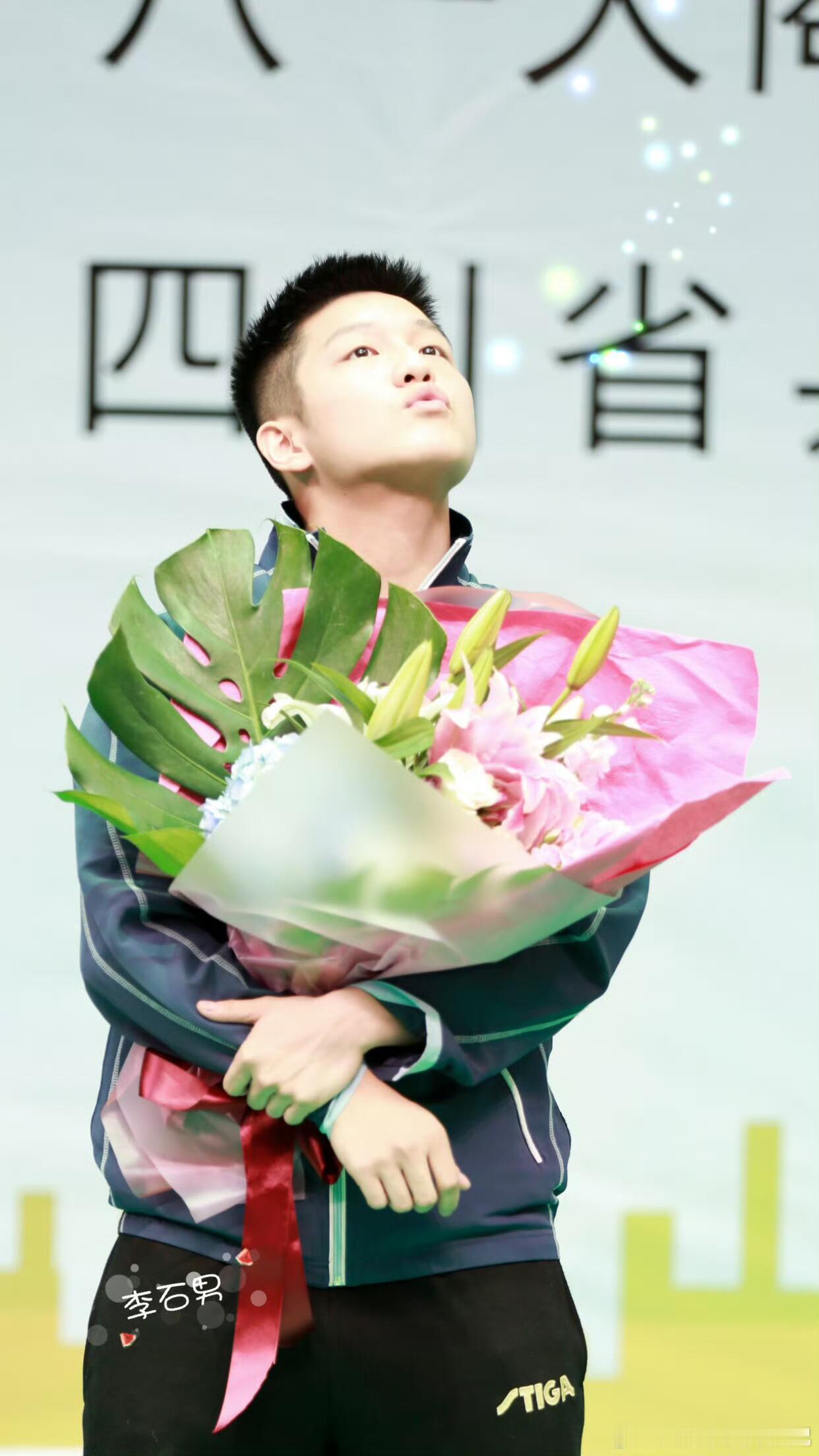 又是没见过的樊振东樊振东,捧着花的小可爱