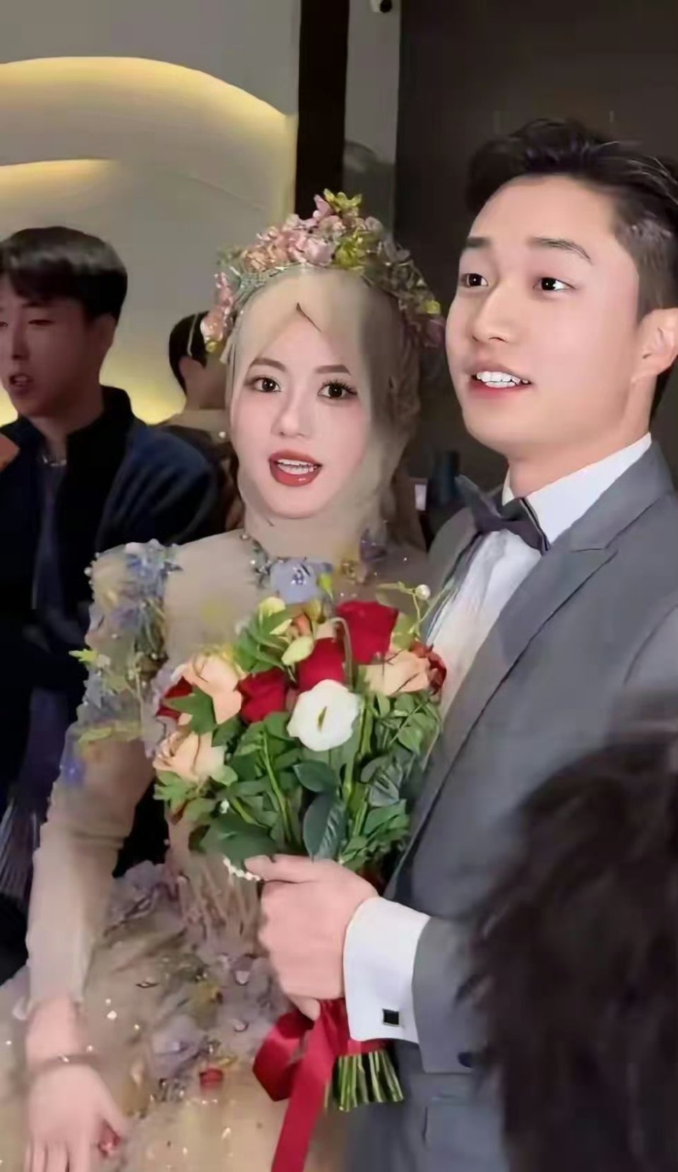 这个是回族的新娘吗?实在是太漂亮了,第一次见这种淡黄色的婚纱 高颜值cp