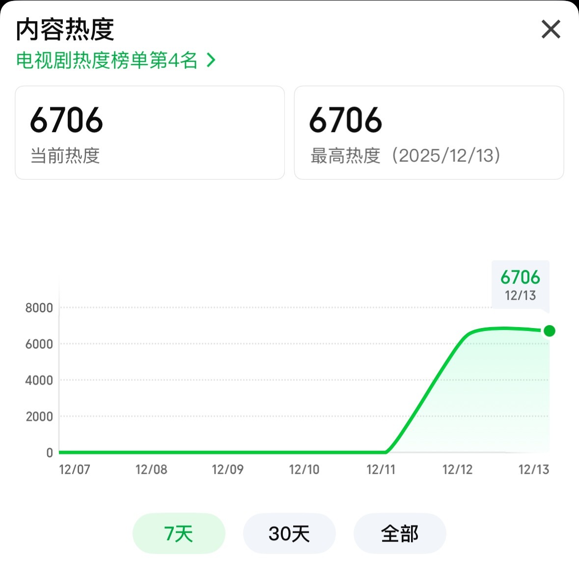 站内热度6706了🔥🔥 今天咱们提前垫热度 开播前冲7000+🔥🔥中午也会有一大批剧粉入场的🔥🔥