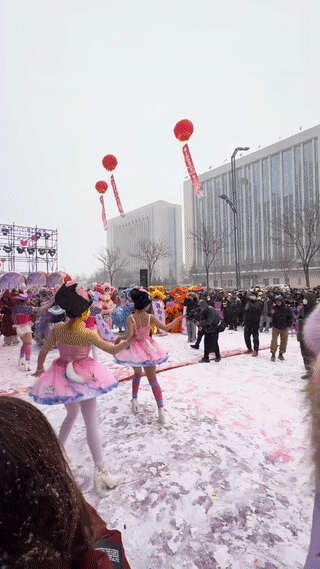 山西太原一个商场开业。 现场的美女歌舞团的女演员竟然穿着单薄的衣服冒着大雪跳舞。 不得不说她们真是太敬业了!太原舞蹈演出