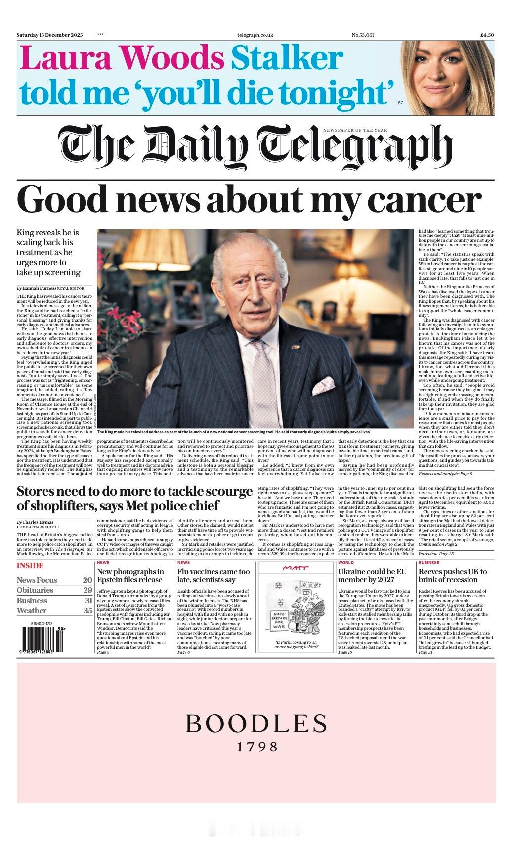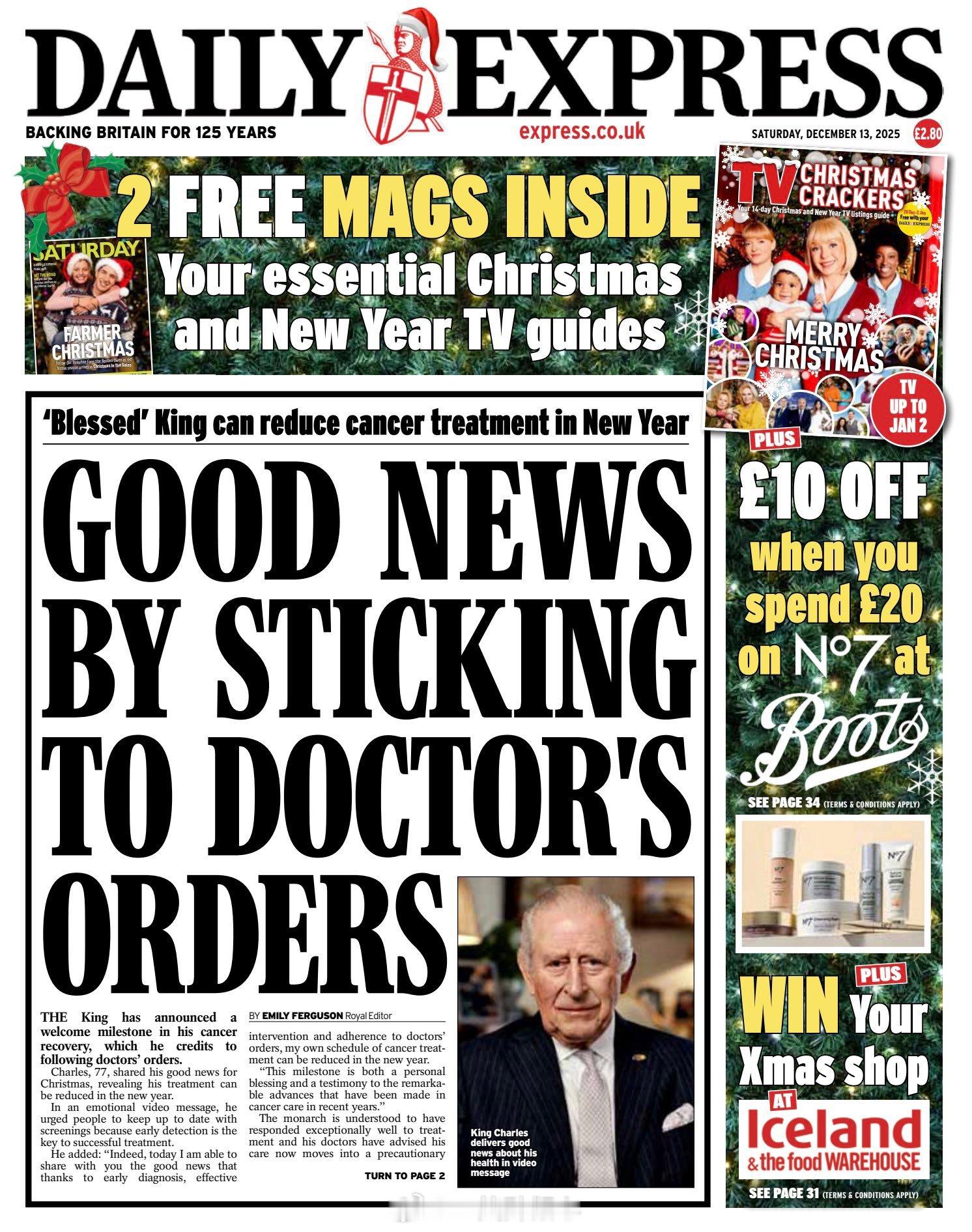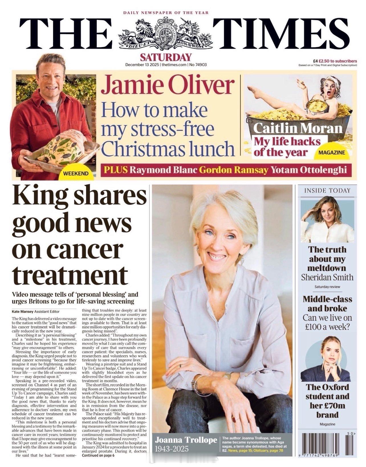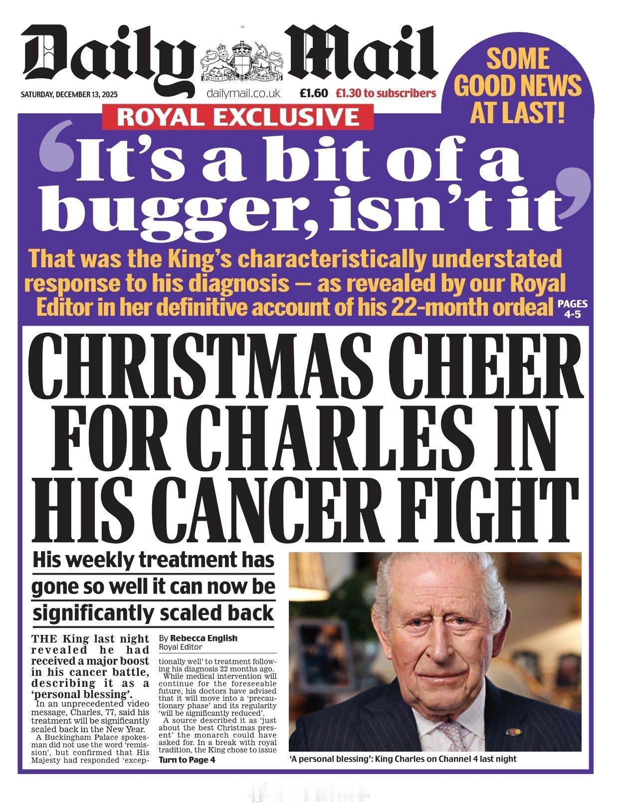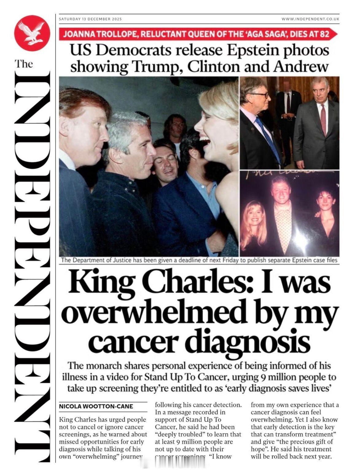 英国王室 查尔斯宣布早期癌症治疗得以缩减的消息刊登各大头条,有图没图都有。