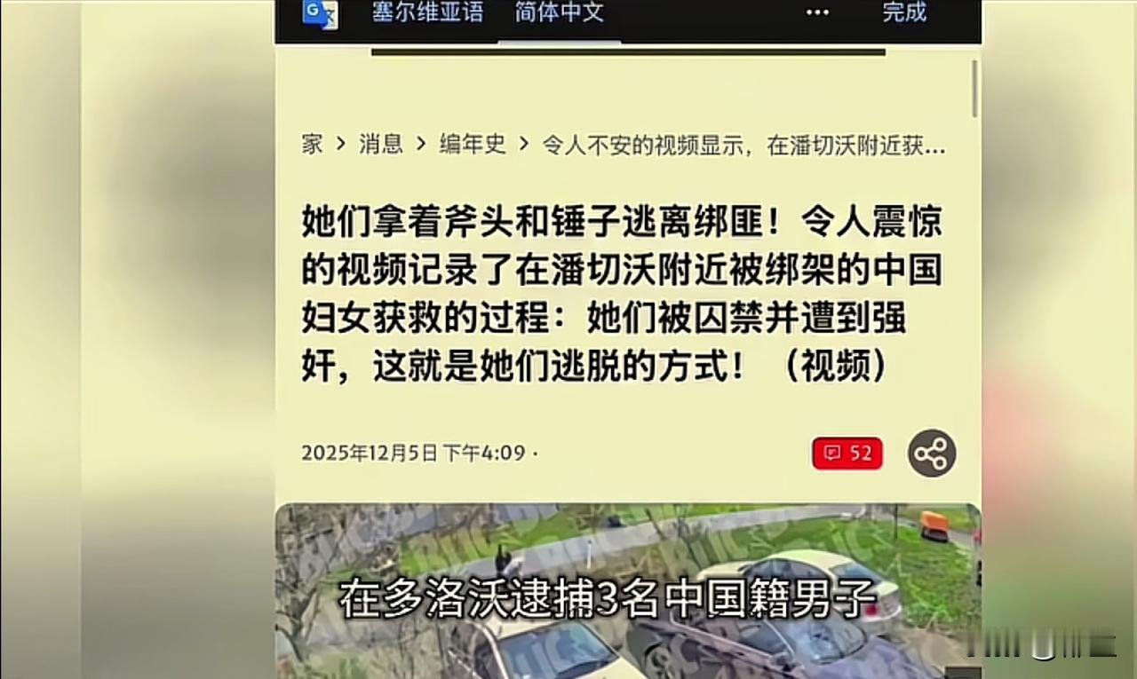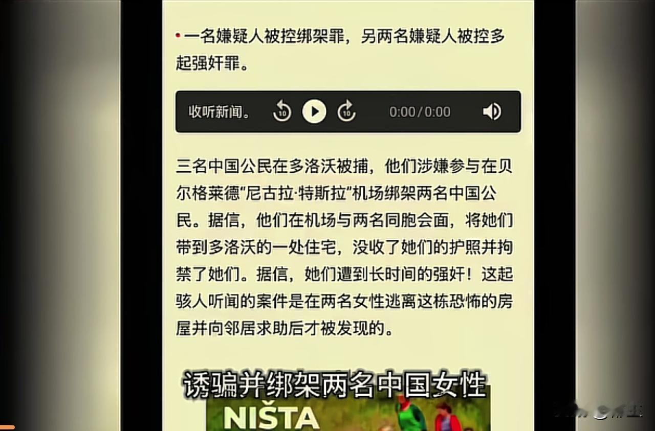 两名中国女性在塞尔维亚被三名男子强奸,这三名男子还是来自中国。 出门在外,原以为见到自己人会比较亲近和好说话,没有想到,反而是自己人,更想来伤害你。利用是老乡的关系,男子骗取女性的信任,将其骗到住宅,随后强行收走两名女性的护照,并把两名女性进行了强奸。 再遭受虐待之后,两名女性并没有选择坐以待毙,而是挣脱了束缚,逃脱了出来走到附近的居民处进行了求救。看绿色衣服女子走路一瘸一拐的样子,可以知道,她们这些天被囚禁的日子是有多么的痛苦。 所以说出门在外,谁都不要相信,不轻易相信陌生人,可以避免很多伤害和麻烦。