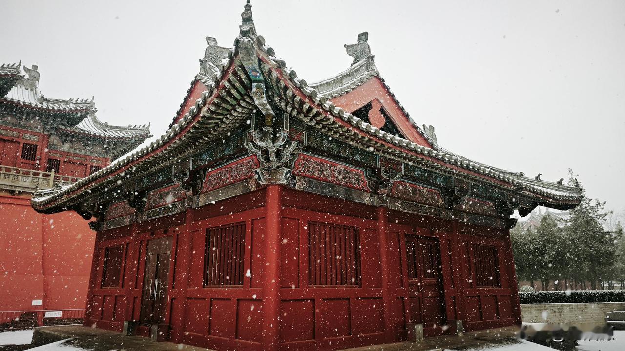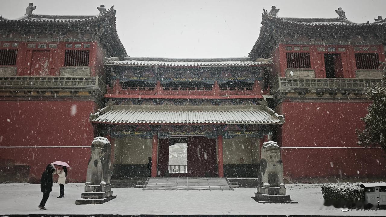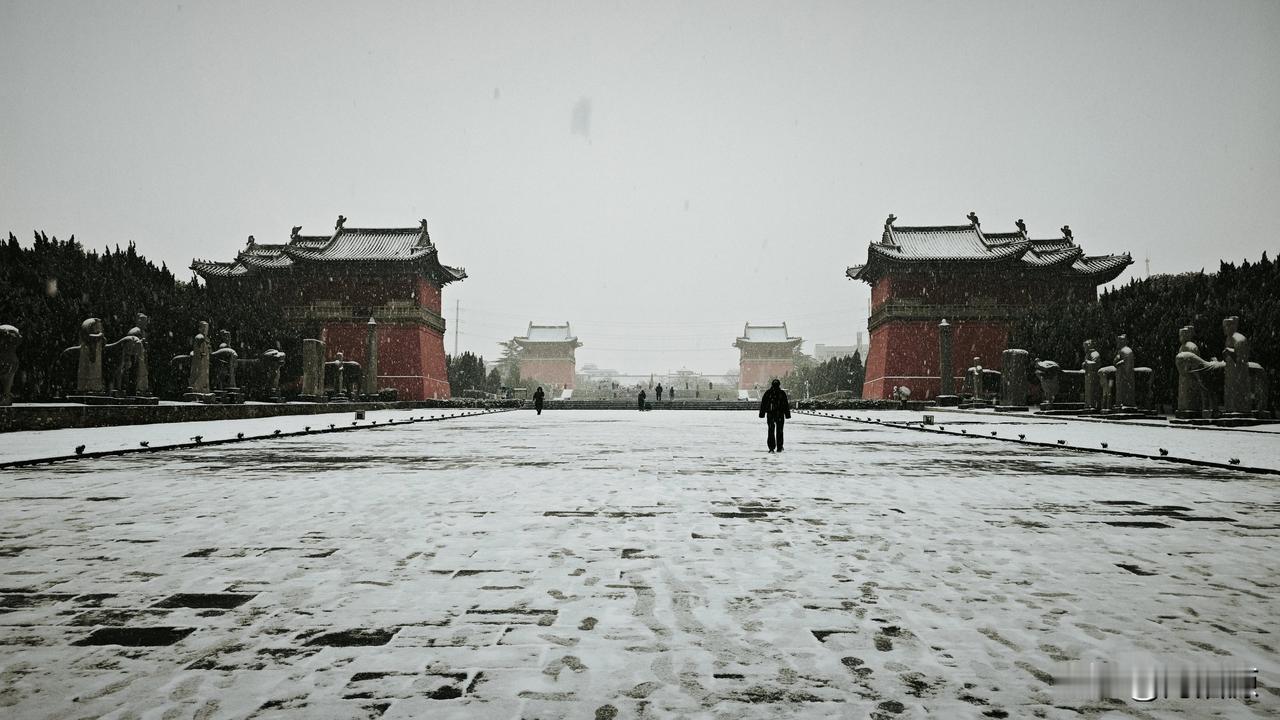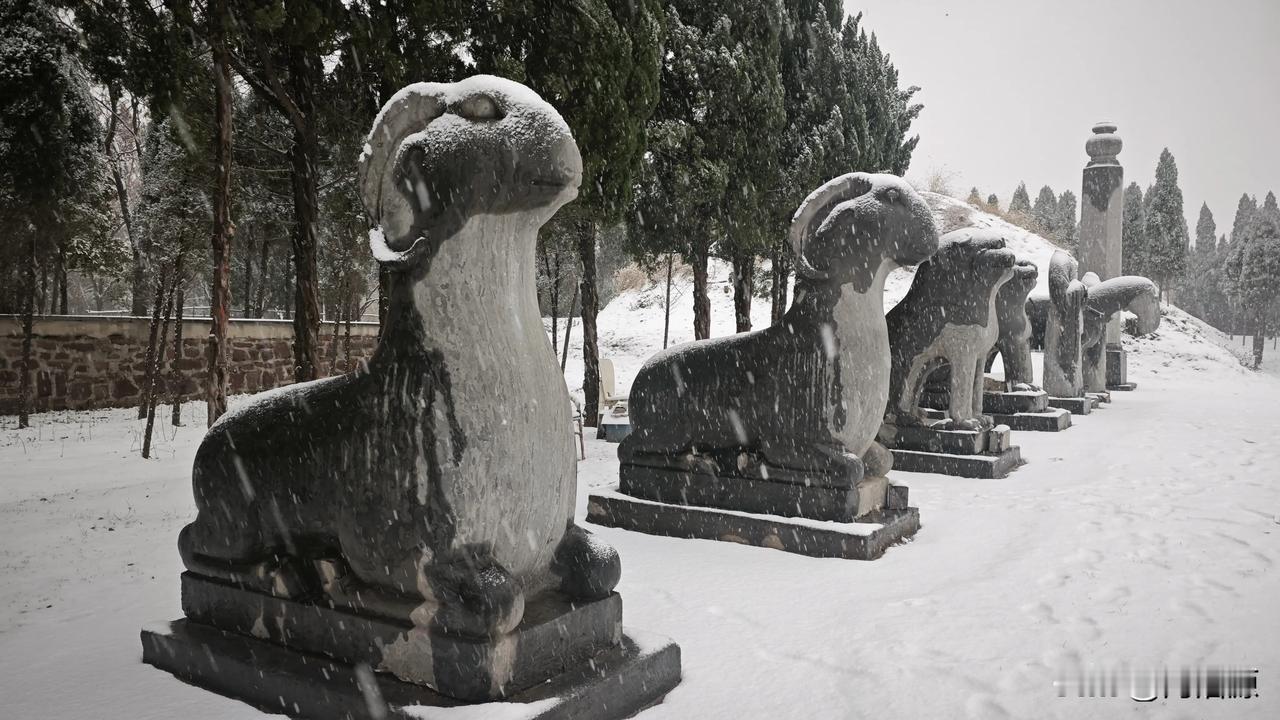 永昭陵大雪纷飞,屹立千年的石像生,红墙黛瓦的古建筑,在白雪的映衬下更显庄严肃穆巩义宋陵石像生 宋陵 神采巩义 大雪