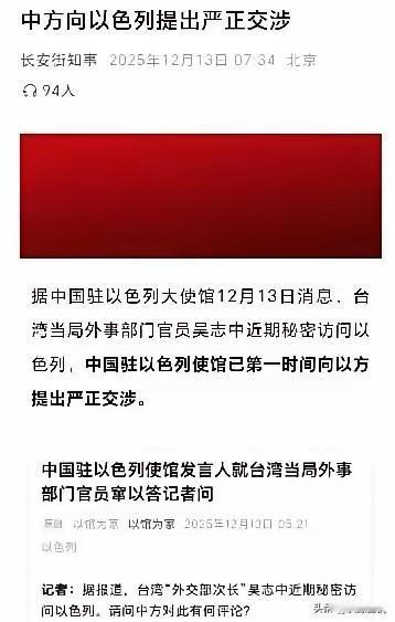 以色列明目张胆在台湾搞事情。 其实中国没有必要对以色列那么客气。我们在中东就该把伊朗武装变得强大。 我们就该支持巴勒斯坦建国。 以色列的现在,就和日本差不多了, 变成了军国主义, 我们真得让以色列明白,它们在台湾搞事情是不行的!以色列