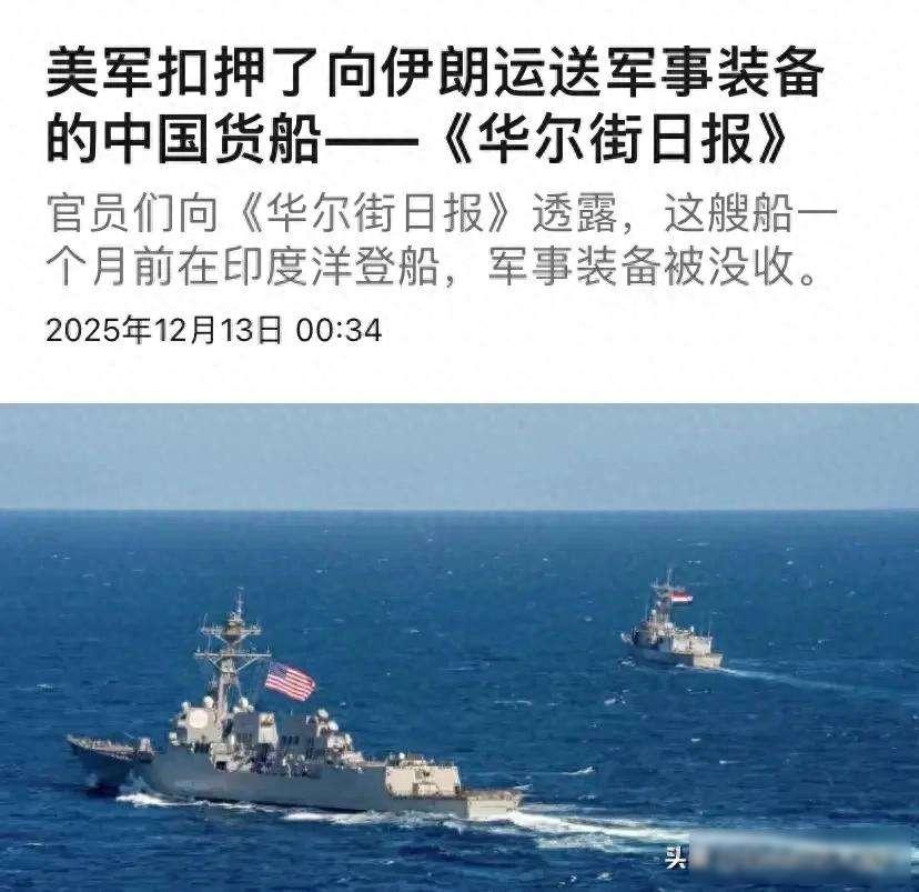 商船被拦,美说有武器,中方没吭声 这件事发生在2025年11月,地点在印度洋上离斯里兰卡很远的一片公海,一艘从中国开往伊朗的货船被美军特种部队登上了,他们没有扣押船只,也没有逮捕船员,只是把船上的货物全部烧掉,然后放船离开,美方声称那些货物属于“军民两用”零件,还说行动依据是内部消息,但没有人看到任何证据,美国印太司令部也一直保持沉默。 奇怪的是,这件事在11月就发生了,却一直拖到12月12日才由《华尔街日报》报道出来,那天正好是中国国家公祭日,时间点显得特别凑巧,当时伊朗方面正在指责美国不让他们的外交官使用银行账户,同时美国国会也有人提出中国从9月开始向伊朗运送大量高氯酸钠,数量足够用来制造导弹,还有人认为这是美国借机向日本展示意图,让中国在亚太地区面临更大压力。 这件事跟1993年的银河号事件不太一样,那次美国强行让船只停了好几个星期,结果什么也没查出来,这次美军动作很快,检查完就直接离开,连扣留都没有,他们好像不是要找证据,而是想制造一个动静,让大家知道美军能随时拦截你的船,这种做法更厉害,因为它不留余地,也不给你反驳的机会。 高氯酸钠确实是火箭推进剂的原料,伊朗现在导弹库存紧张,确实需要它,但中国出口的东西大部分都能用在民用领域,比如医药和消防,美国没有拿出港口监控或者实物照片,全靠匿名情报和估算数字,这种说法听着有点虚,像是故意模糊界限,给自己留出操作空间。 美军这次能够准确定位远洋商船,说明他们的卫星和情报系统确实不错,以后要是都这么做,中国货轮可能需要改变航线,或者绕到第三方港口去,不然很容易被盯上,这种事情以后估计不会少,因为海上没有明确边界,谁实力强谁就说了算,可是公海毕竟不是谁家的后院,按照国际法规定,没有船旗国的同意,其他国家不能随便登船检查,这种做法到底算不算越界,恐怕没人敢直接表态。