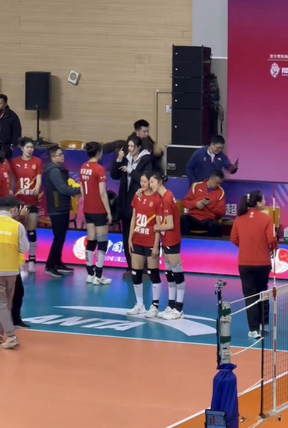 张常宁和张晨兄妹在赛后指导江苏新任主攻范泊宁。范泊宁首次出任江苏女排主力,拿下2