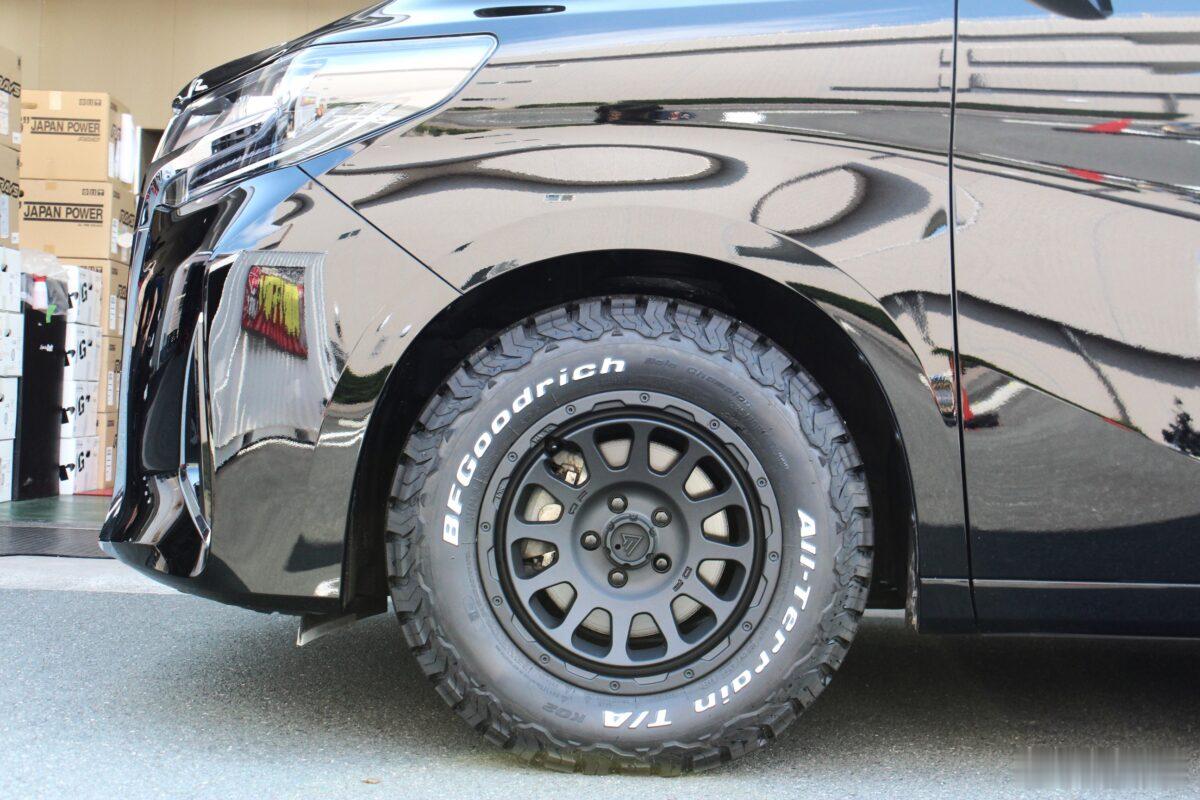最近在研究埃尔法的冬季胎和轮圈搭配,发现不少四驱 30 系车主直接上了 AT 胎,16 寸防脱圈配大外径轮胎,居然觉得有点好看