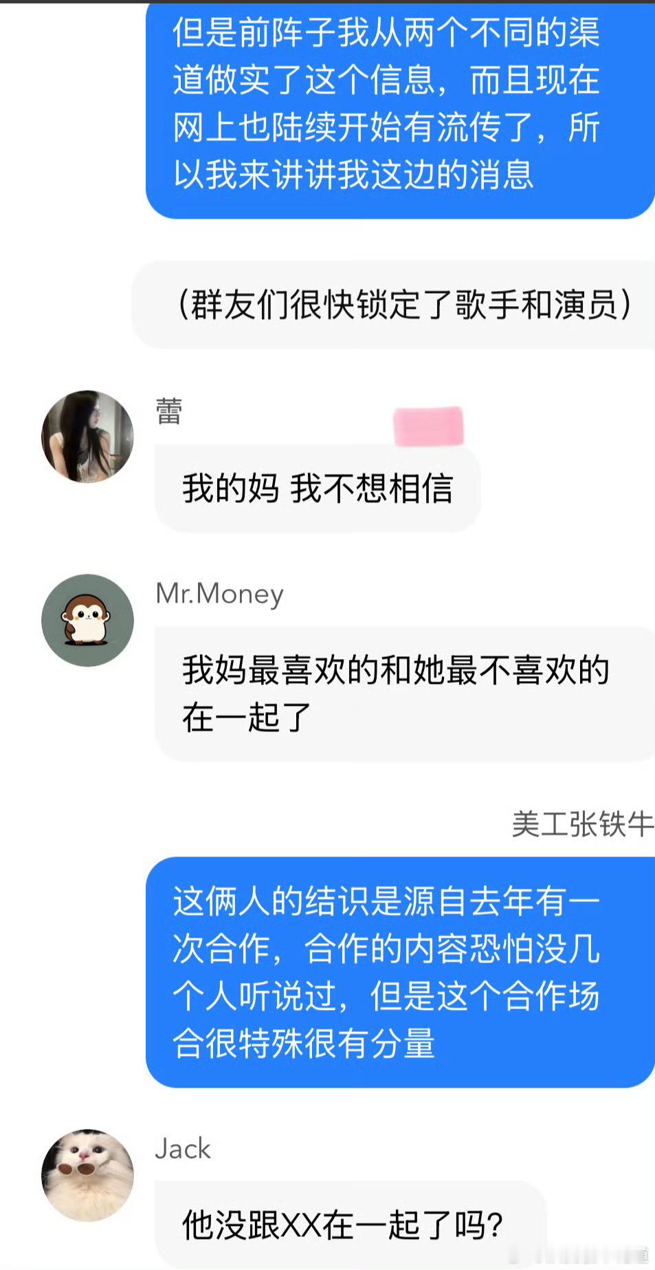 曝双顶流恋情这时候没人跑出来吹自家顶流了?不过看聊天记录,我有点信了,并且大概知道是谁和谁了,其实也没那么难猜。 而且还真是双顶流。