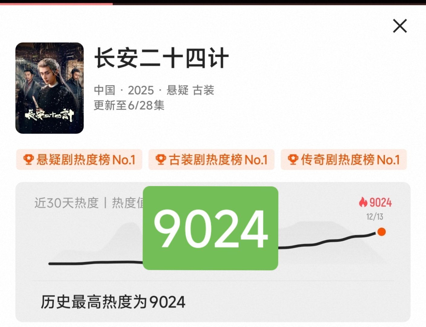 长安二十四计优酷热度破9000成毅主演《长安二十四计》次日播放热度达到9024,超越上部破万剧次日热度,居2025年站内热度前三,开局不错,加油宝子们。