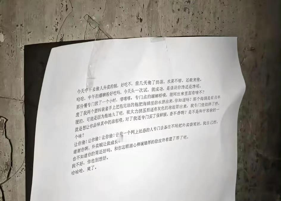 广西某高校,一女子偷外卖,偷到了加过粪便的外卖!一怒之下狂踢快递柜,还报警要求被偷外卖的学生赔偿。 该女子是偷外卖惯犯,被偷同学忍无可忍,点了一份螺蛳粉,用海绵将米田共的脏水吸出来,再挤入螺蛳粉中…… 竟然还有胆量报警?