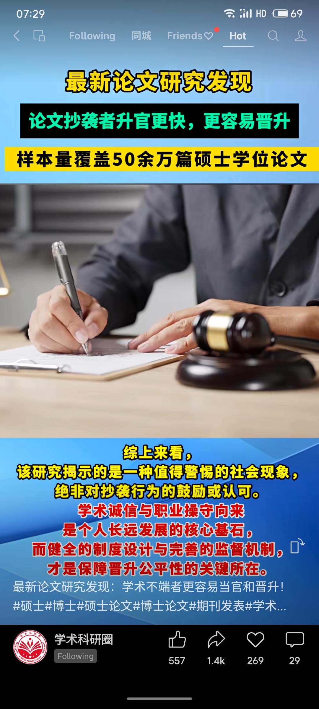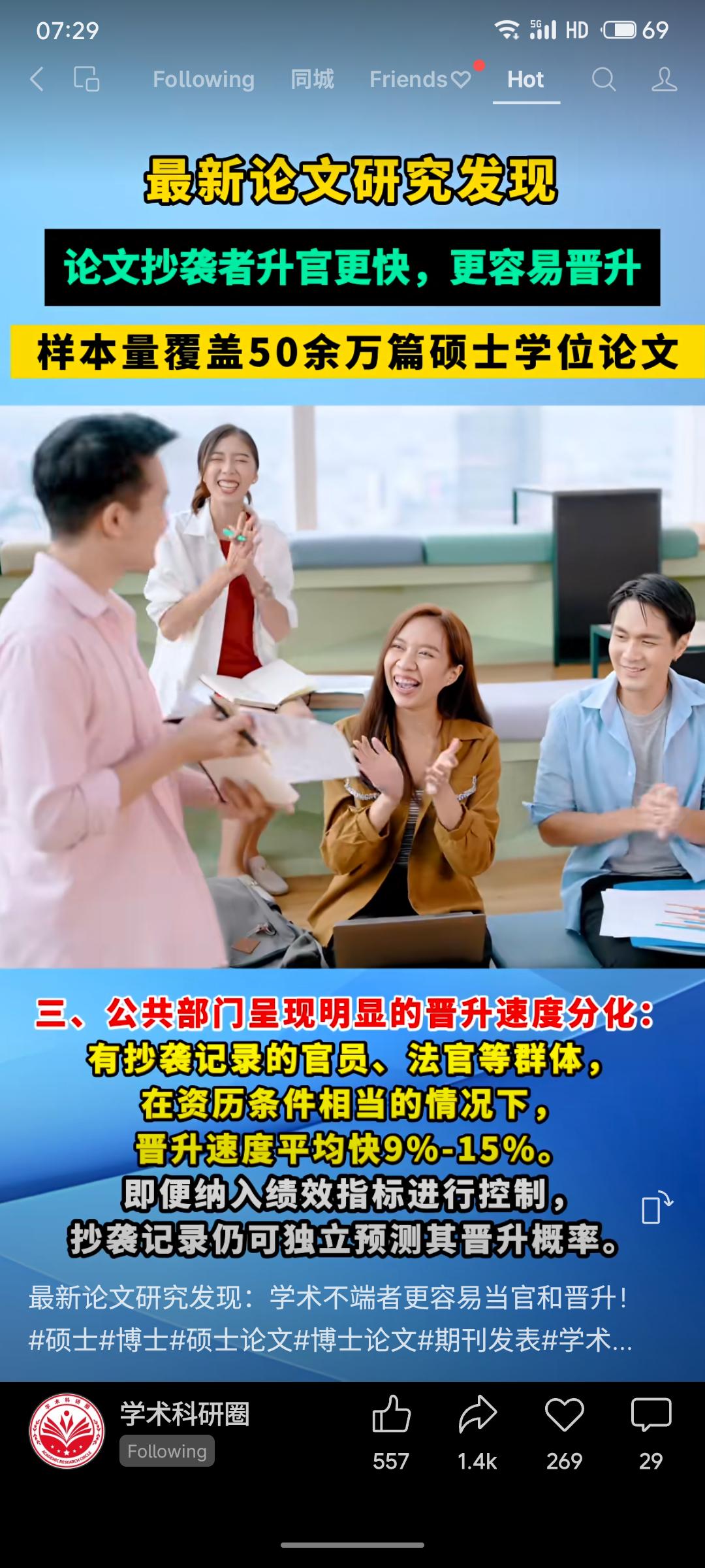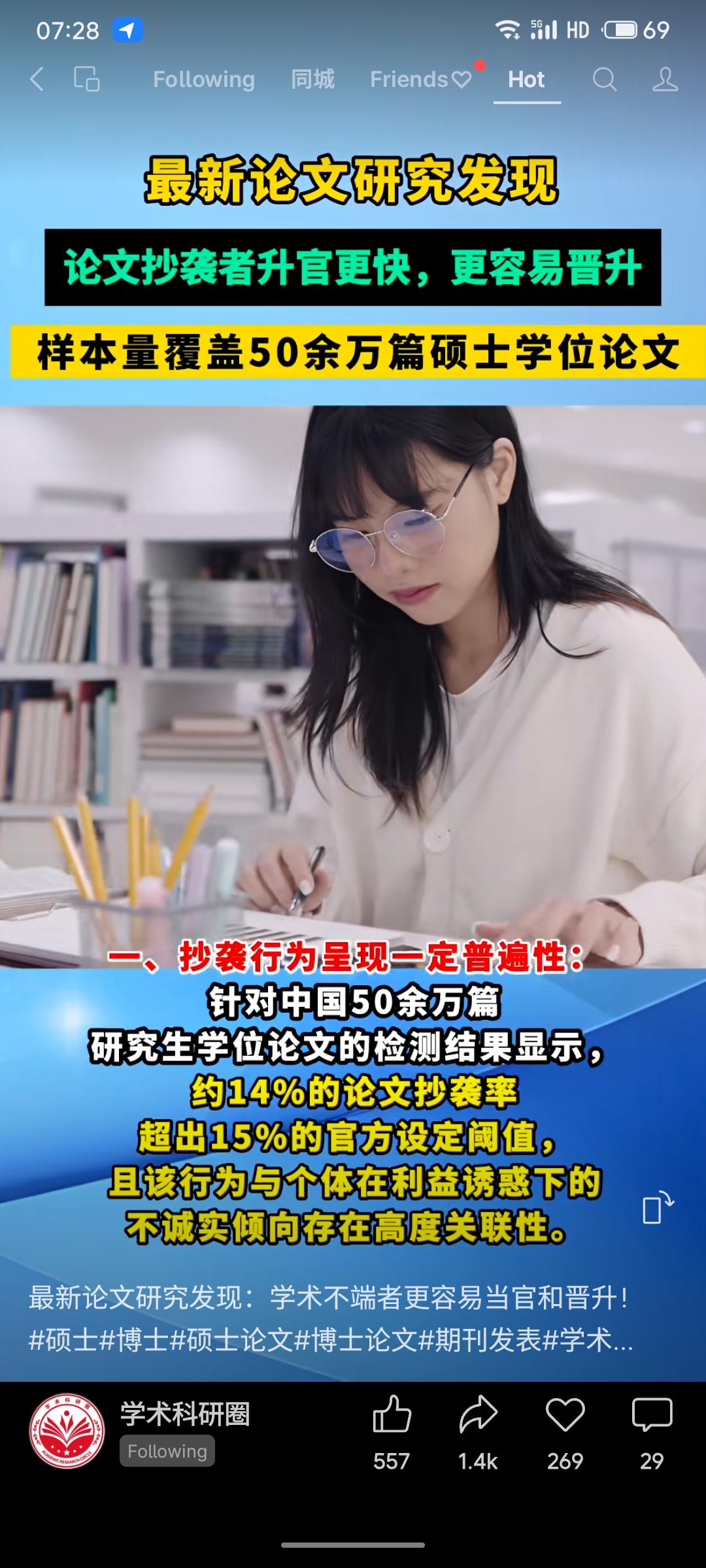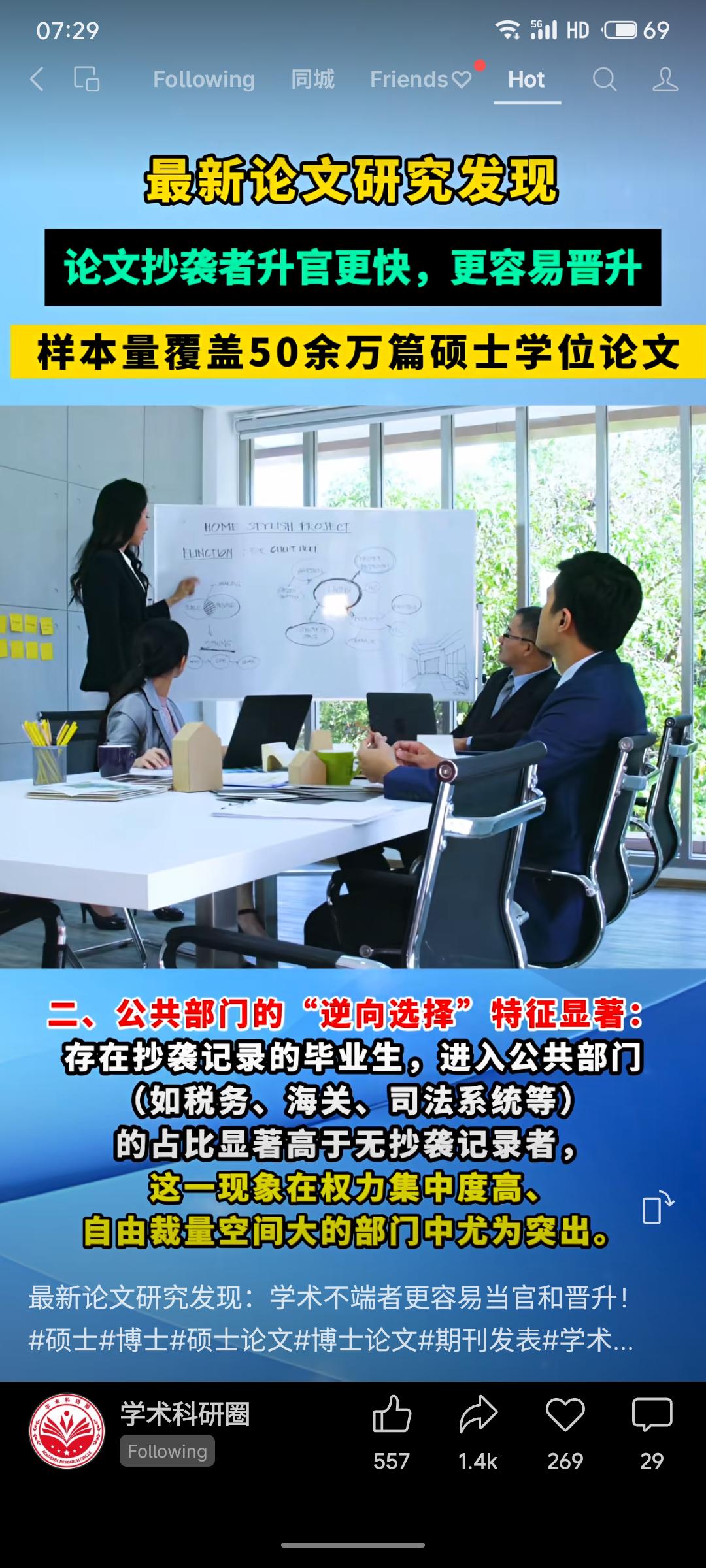 该研究基于对中国50余万篇硕士论文的分析,发现存在抄袭记录的毕业生进入公共部门的比例更高,且在晋升速度上平均快9%-15%。这揭示了公共部门选拔中可能存在“逆向选择”的倾向,即学术不端者反而在权力集中部门获得优势。研究警示这一现象可能影响治理质量与公信力,凸显了健全学术监督与晋升机制的重要性。
