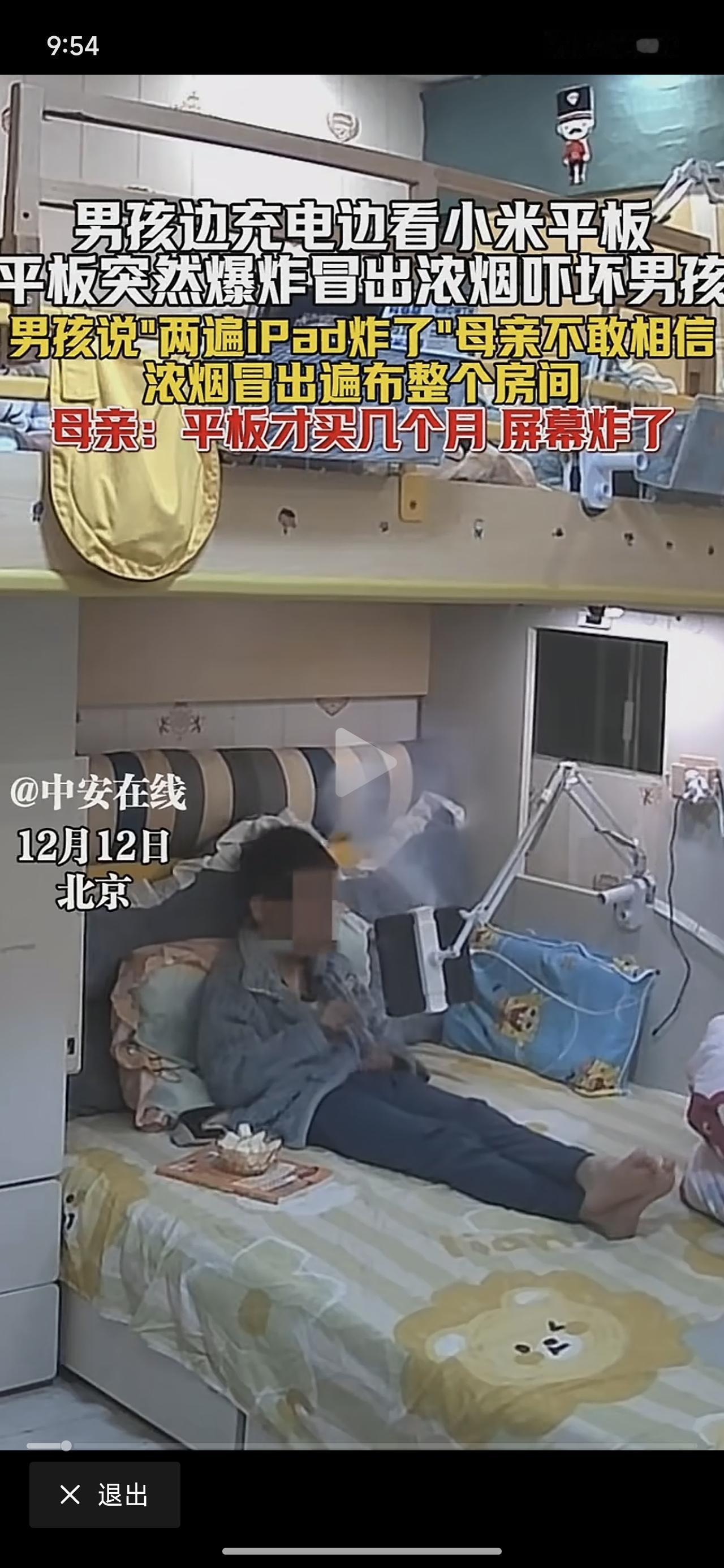 视频中孩子的平板炸了炸了!是充电状态。边充电边玩,还真是危险。孩子叫了两遍,妈妈才来看,充电头才拔下来。就是个冒烟,还没有燃烧起来。 米啊,真让人操心啊!库存车多了起来,本就让娟儿头疼了。这个期间,本来是主流业务的智能机这一块,也来凑热闹。 真的不省心啊!流年不利啊!是犯太岁还是犯小人,是不是可以去看看,让老师傅给出出主意。这样下去,真的危险啊!