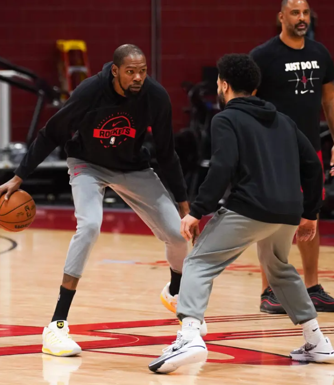 火箭社媒晒出球队最新的训练照片组图,凯文-杜兰特等球员出镜。 并配文:训练不能停。 本赛季,杜兰特场均得到24.8分4.6篮板3.9助攻1抢断0.6盖帽。