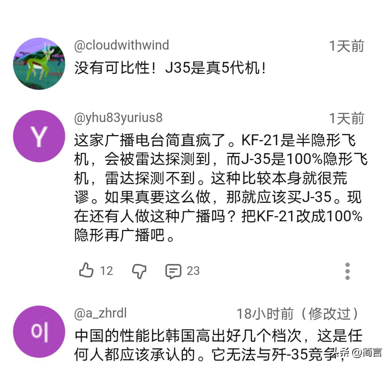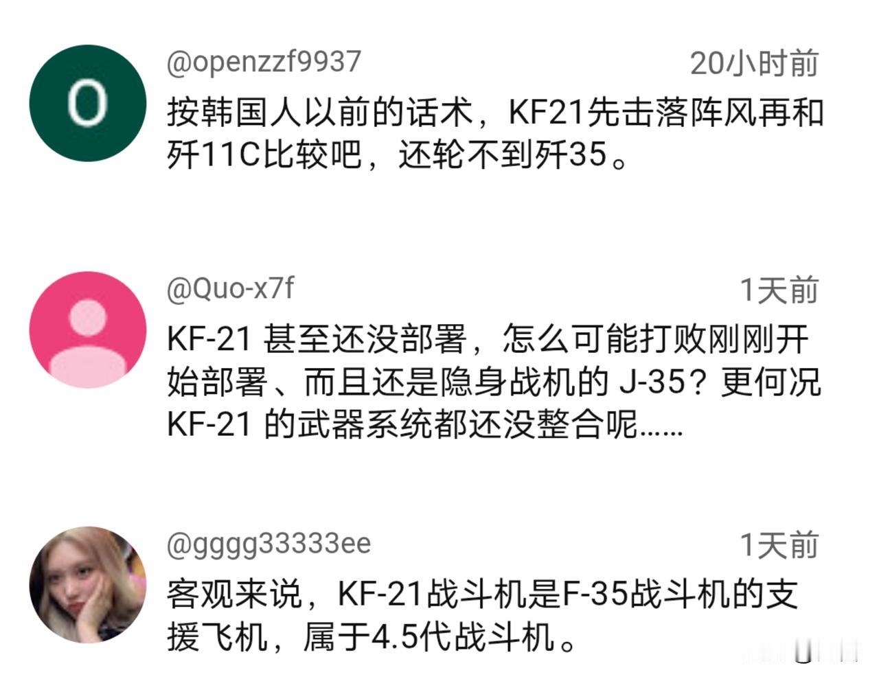 要与歼35争夺市场?韩网友:KF21战机不如歼35。 据韩媒12月13日报道,中韩两国在中东的军火市场展开了激烈竞争,但考虑到与美国等在内西方武器的互通性等因素,韩国仍占据上风。同时,韩媒还将两款战机进行了对比。 在上个月的迪拜航展上,韩国向中东国家大力推销KF21战机。业内人士指出,尽管性能不如歼35,但包括KF21在内的韩国武器拥有价格和兼容性的优势,而且技术转让和合作生产方面更为灵活。所以,令KF21战机有了与五代机竞争的资本。 消息传出后,热议由此引发。韩网友认为,KF21的性能仅与歼10CE相当,与歼35没有可比性。 近年来韩国的军火出口额一路飙升,一跃成为前五的武器供应国。那么,KF21能否像其它韩国武器一样赢得中东国家的订单呢?