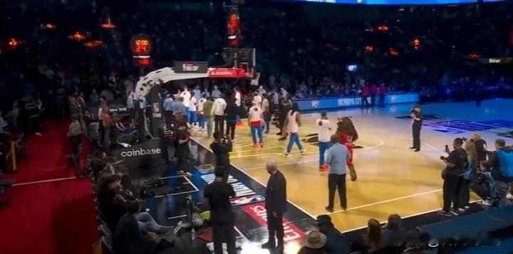 干啥呢?雷霆队与马刺队今天在NBA杯半决赛中相遇,这场强强对话吸引了球迷的关注。然而原本定于北京时间今天上午10点开始的比赛,却因为不明原因推迟进行,现场画面显示,到上午10点时,球馆内观众席上方的灯光还没打开,双方球员依然穿着训练服在场上等待,完全没有开始比赛的意思,让人大惑不解。 经过半个小时的等待,比赛终于正式开打,比赛也因此遭到延迟。但目前NBA官方尚未就比赛推迟的原因进行说明,技术原因还是突发故障?球迷不得而知,但是NBA的赛场保障,看来也难免意外。雷霆VS马刺